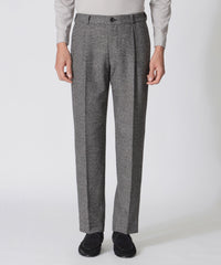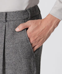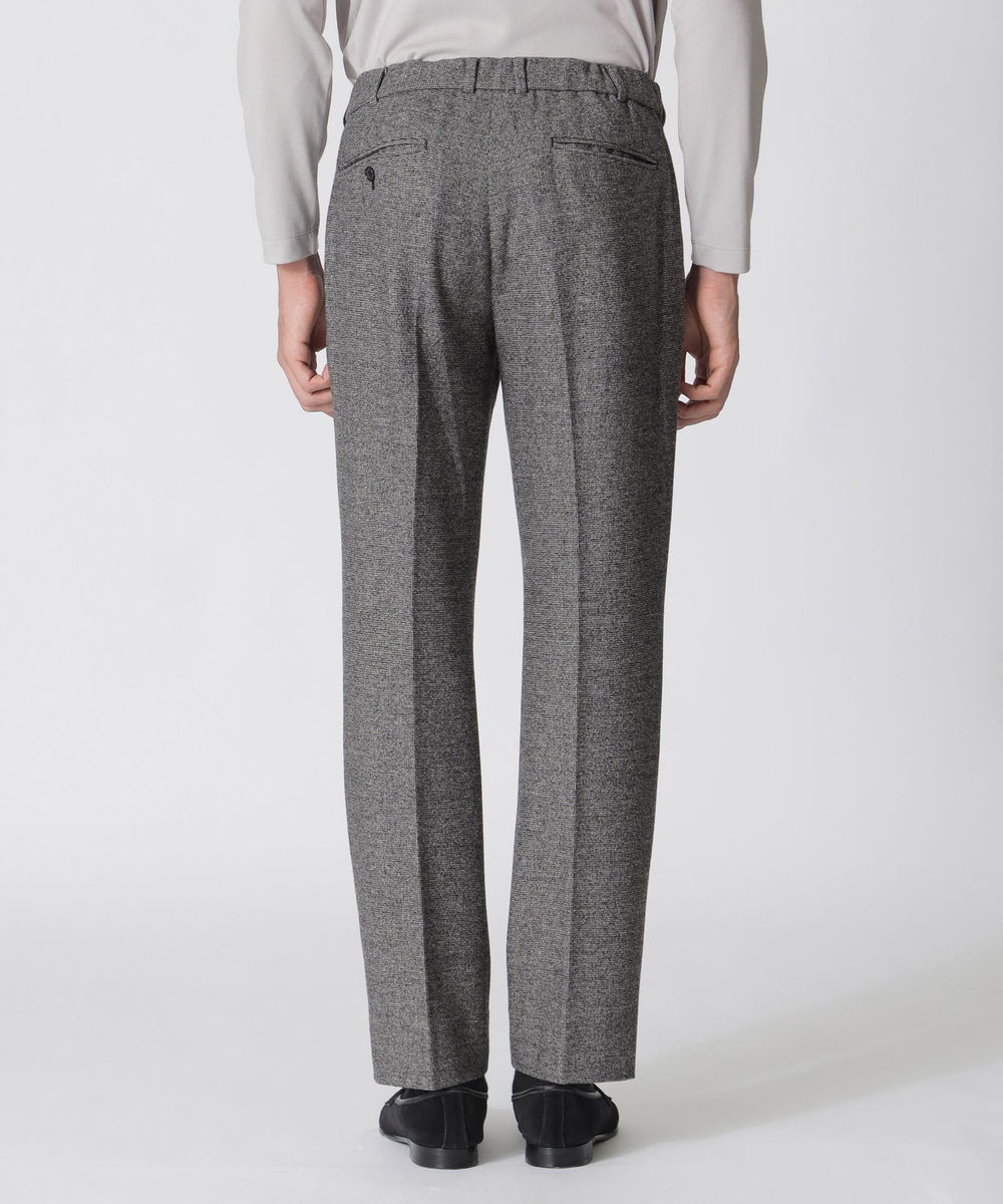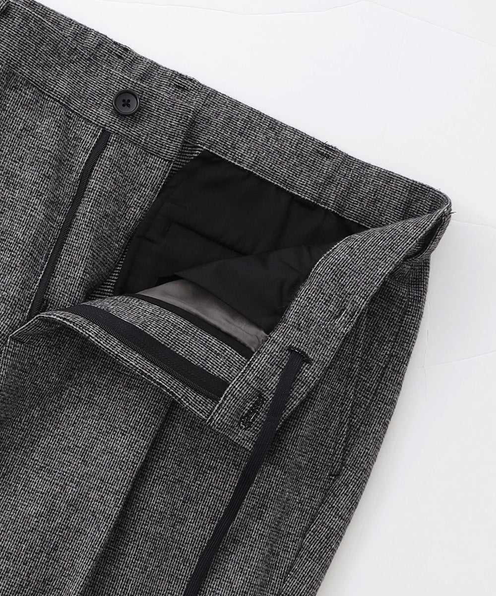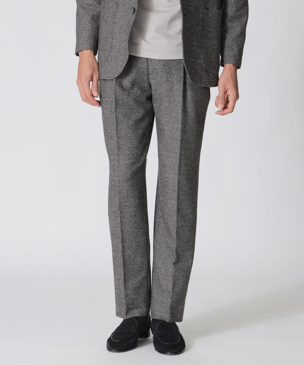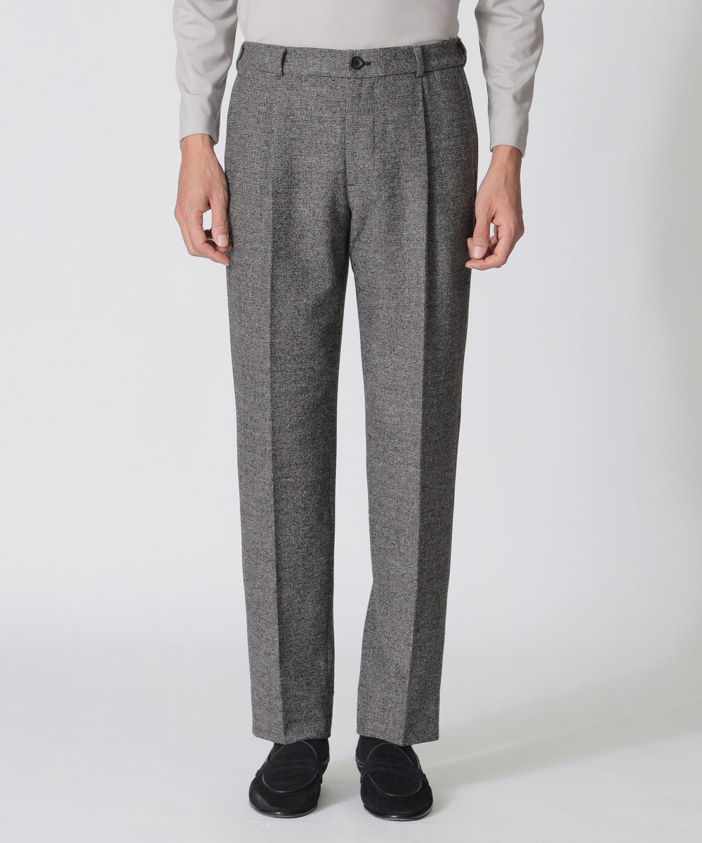 プリーツにより腰回りにほどよいゆとりがありながら裾にかけて程よいテーパードとなっているので着用時にスッキリとした印象になります。