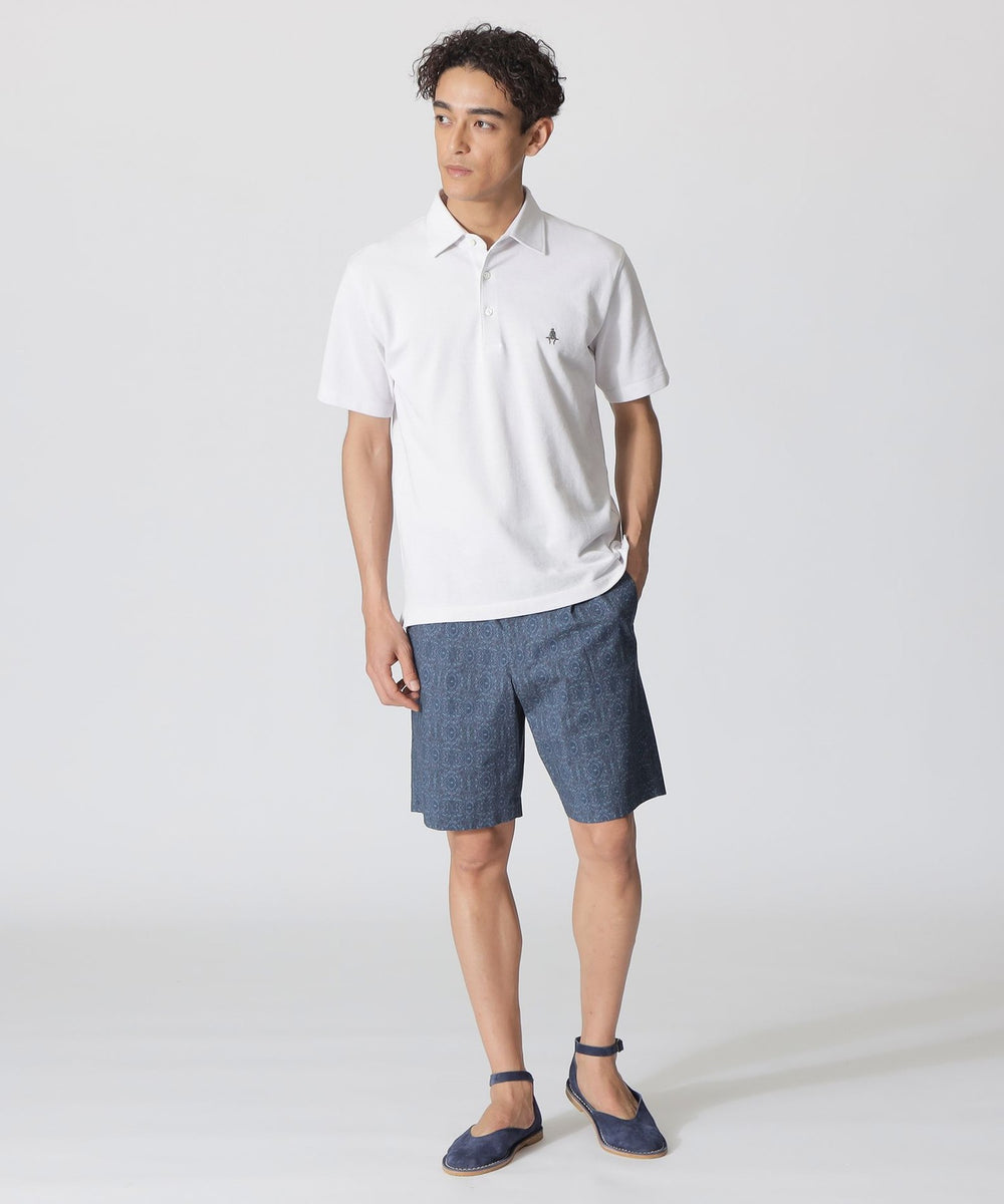 ポリウレタン混の綿素材を使用した、リゾート感のある印象的なショートパンツです。