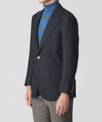ワイドノッチドラペルのシングル2Bジャケットです。深めに設定したVゾーンがエレガンスな表情を与えます。