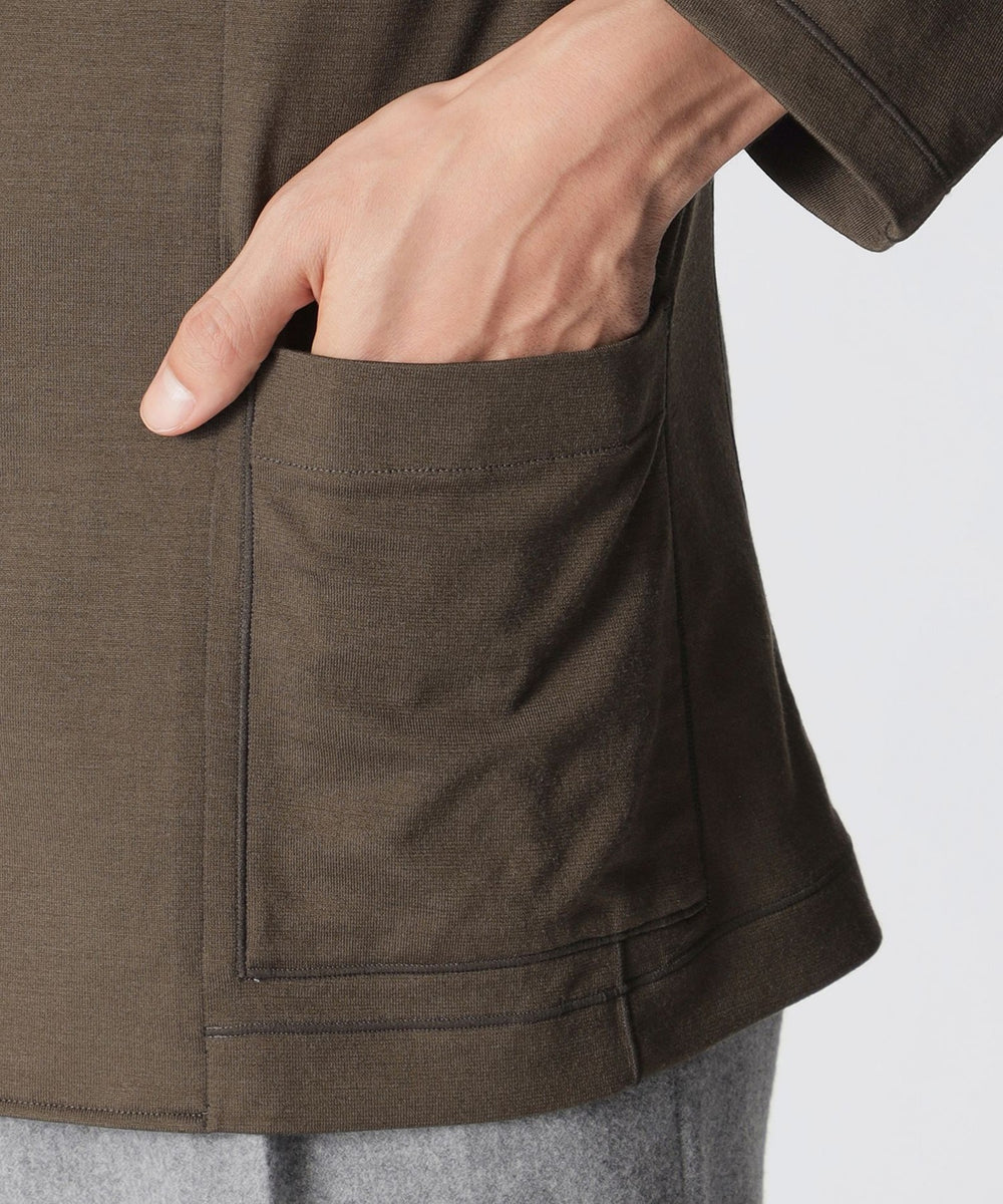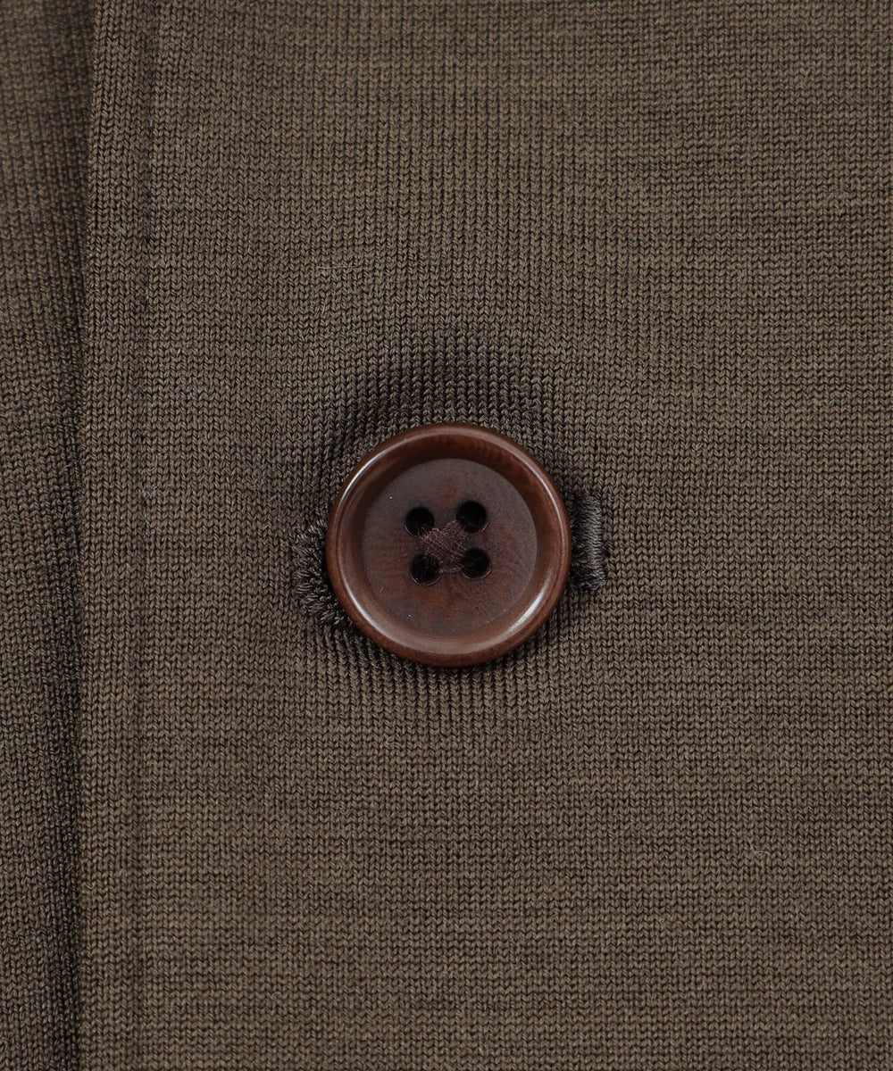 シンプルながらも特殊な縫製技法を採用しており、その縫製技法が一般的なカットカーディガンより差別化されたデザインポイントになっています。