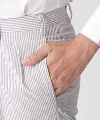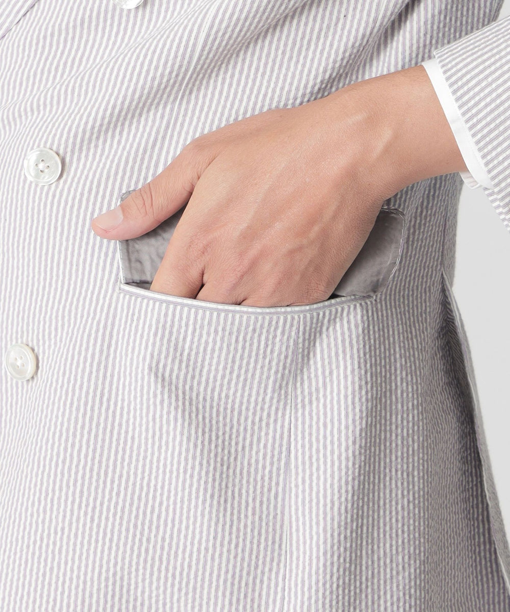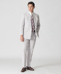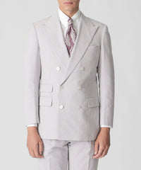 イタリア製シアサッカー生地を使用したワイドピークドラペルのダブル6ボタンスーツです。