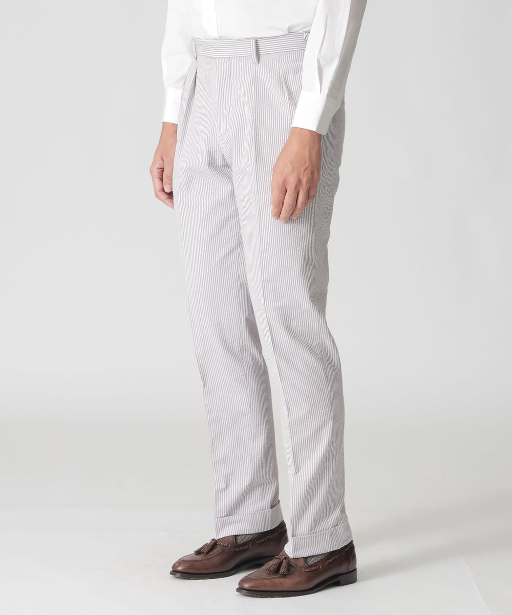 組下は2インプリーツテーパードシルエットで、裾口にかけて少しテーパードした綺麗なシルエットになっています。