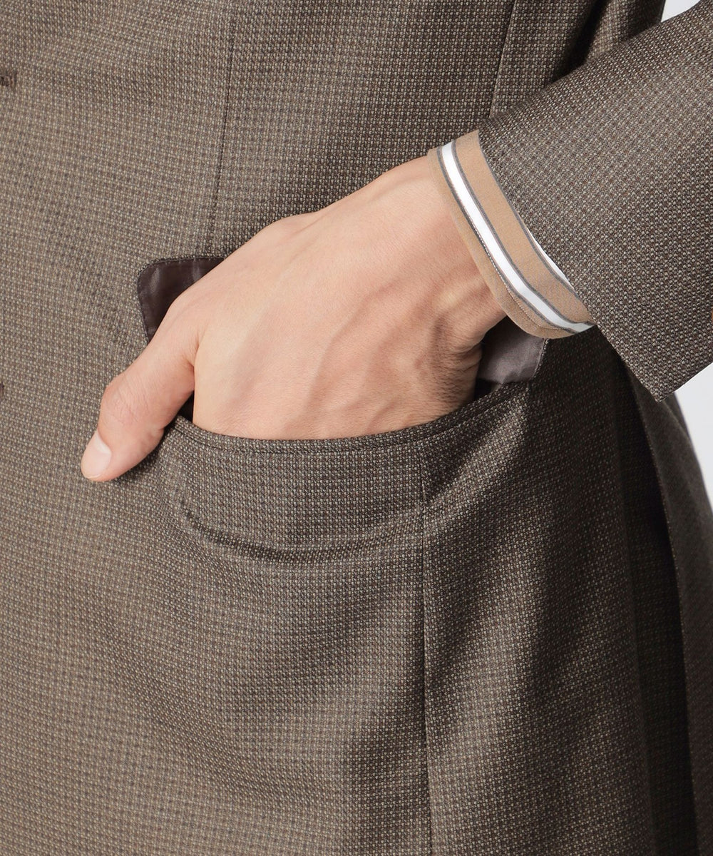 生地はイタリア製のミニチェック柄ウール生地を使用。