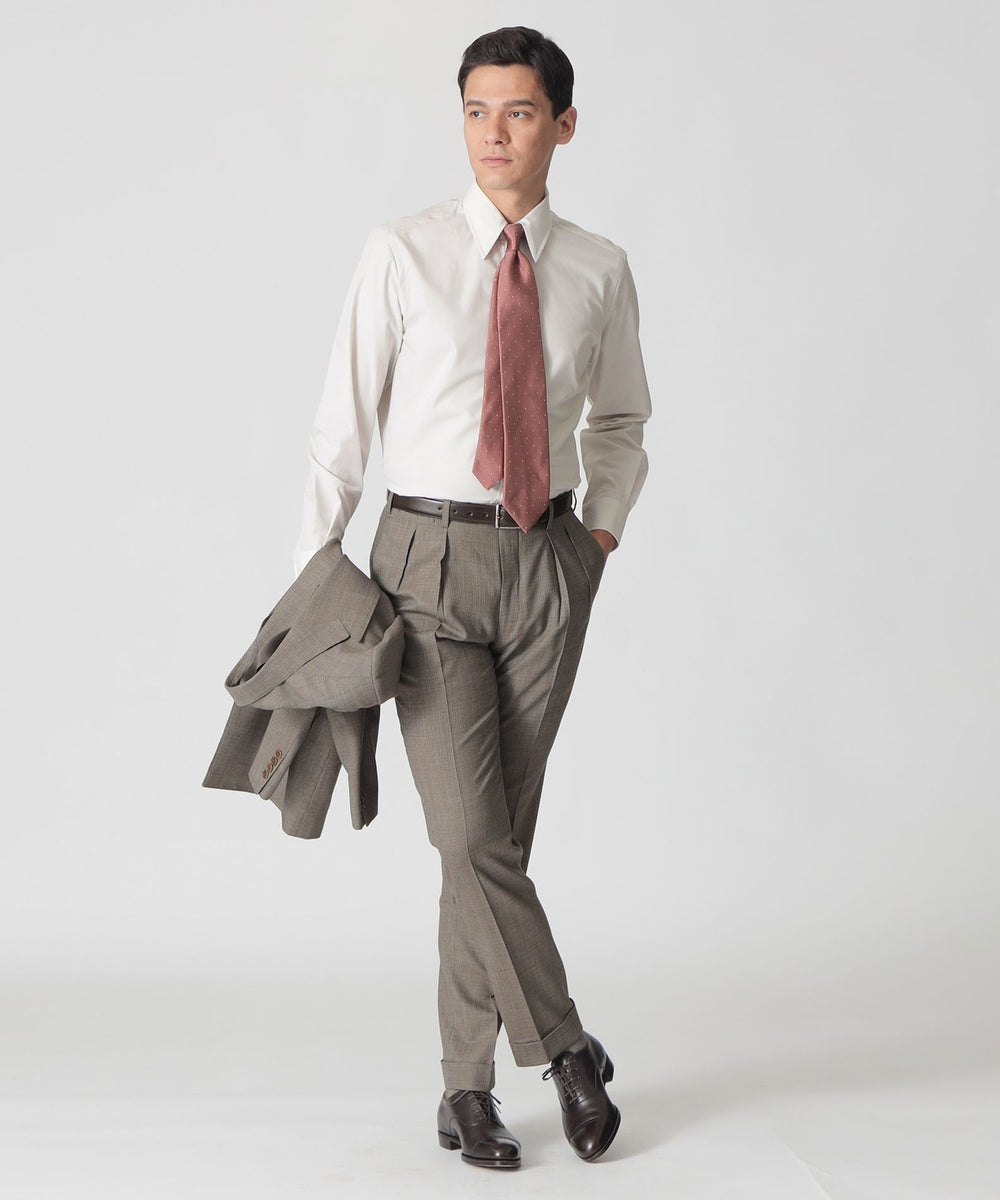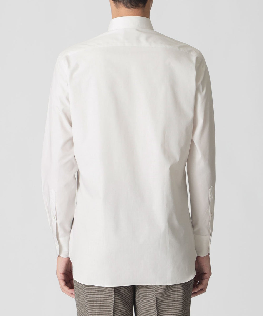 少しいつもより抜け感が出るようにシルエットはゆったりめで、タイスペースを広めにとった襟のデザインになっており、COLLECTION LINEのスーツやジャケットと合わせてクラシカルな雰囲気をお楽しみいただけます。