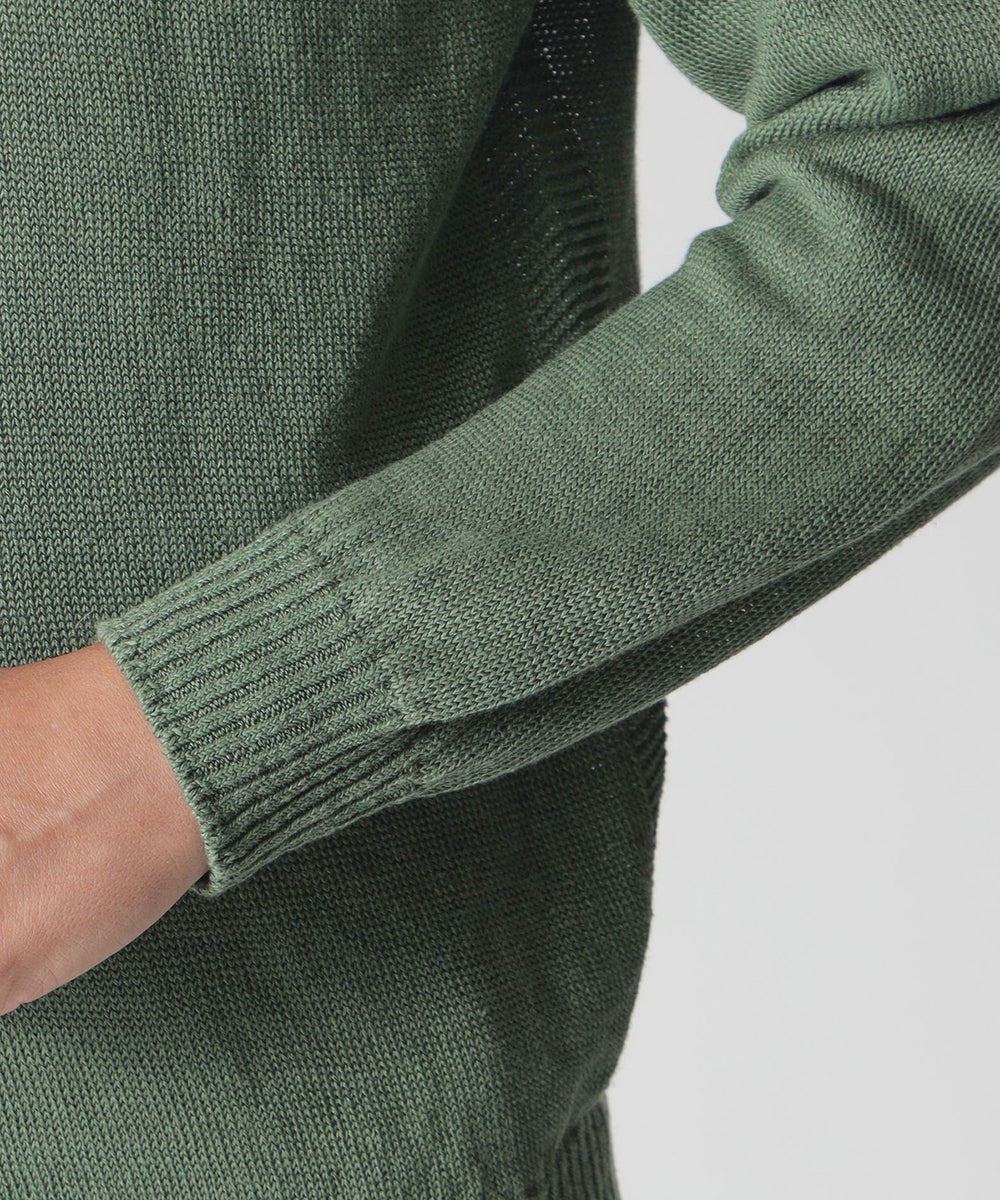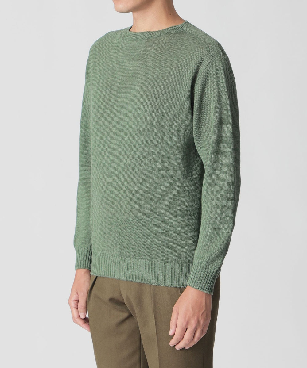 イタリア糸メーカー製のヘンプを100%使用した、ホールガーメントのボートネックニットです。