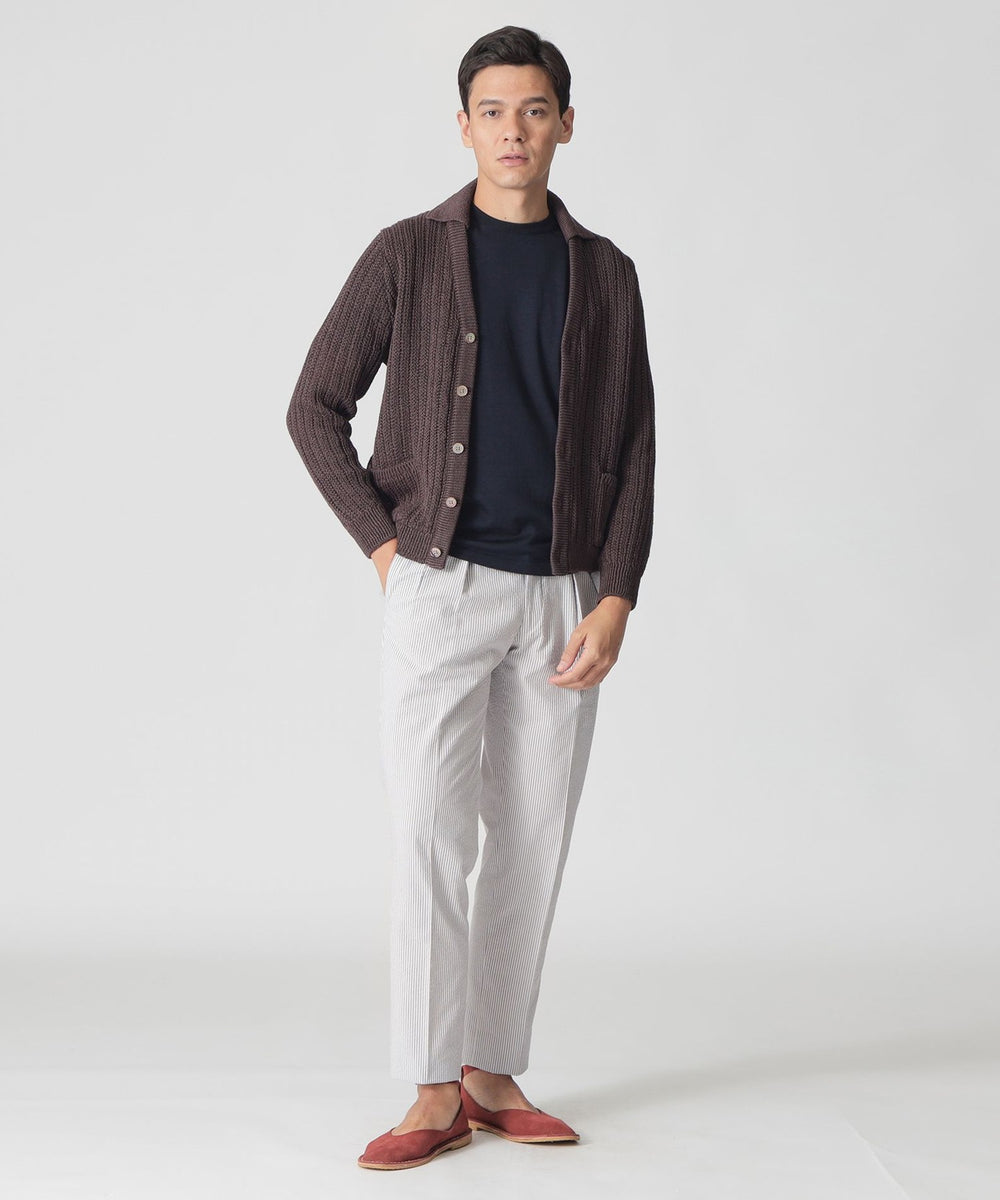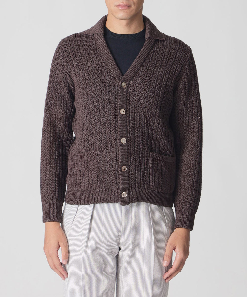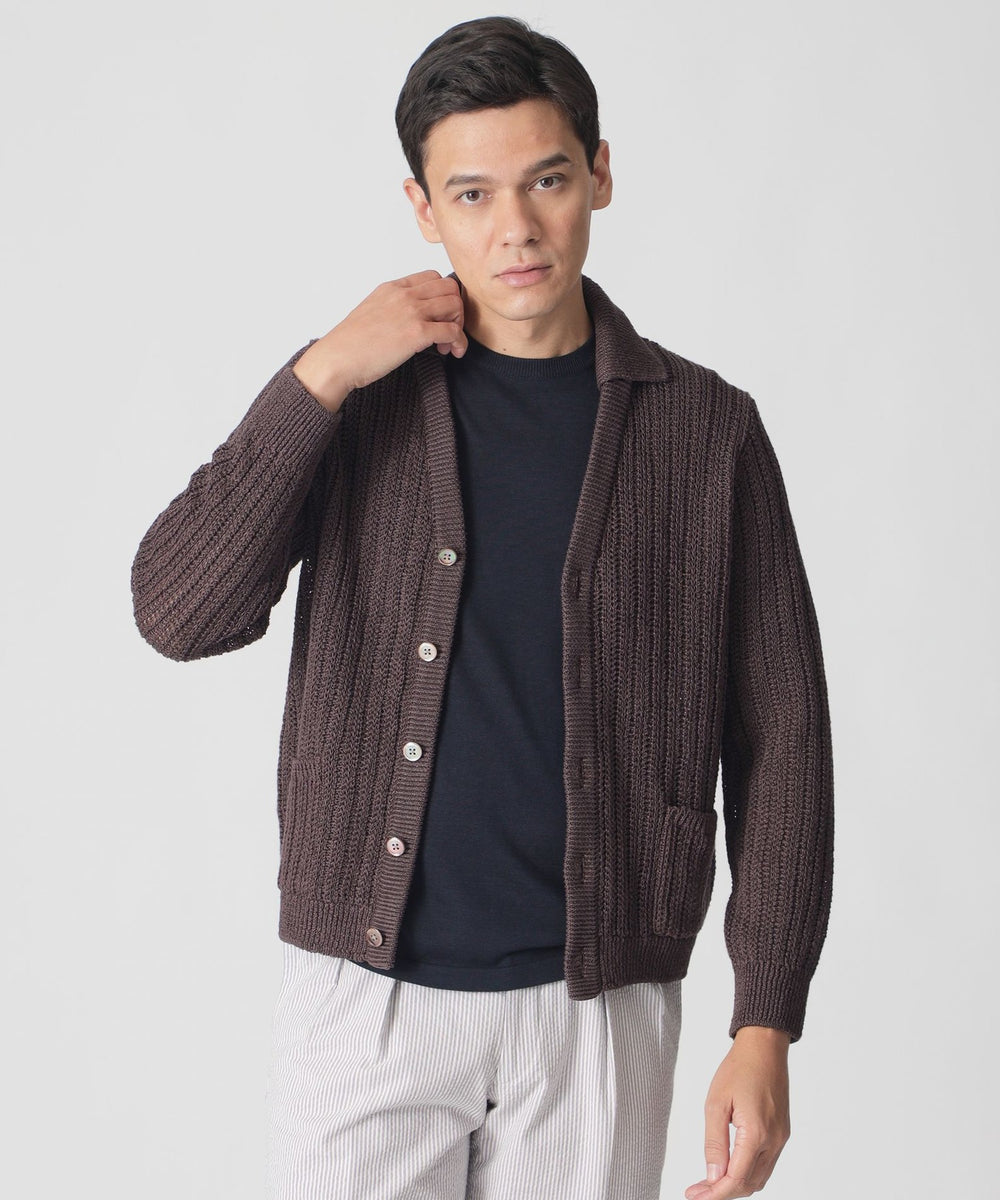 イタリア糸メーカー製のヘンプを100%使用した、ニッティングストライプのカーディガンです。