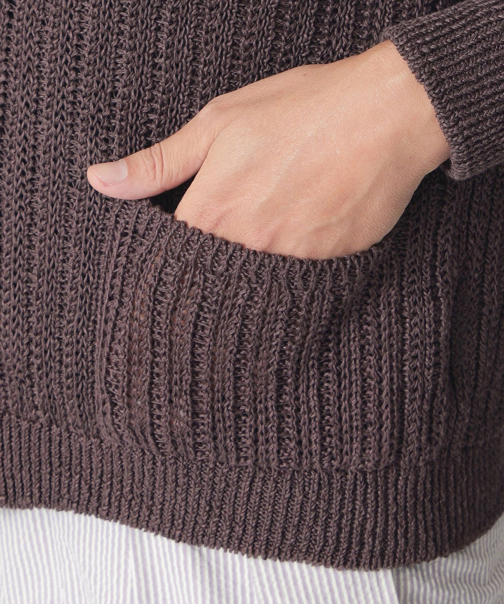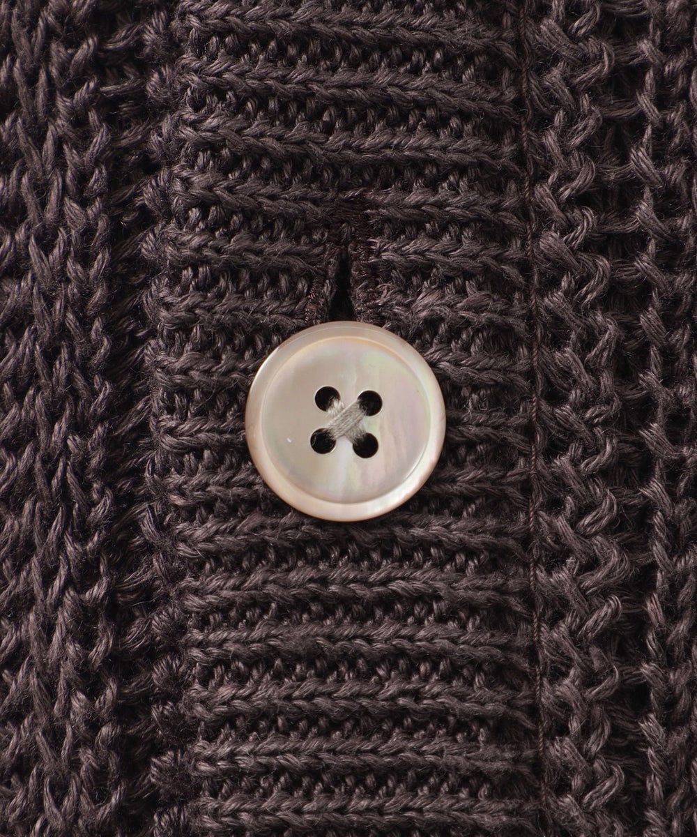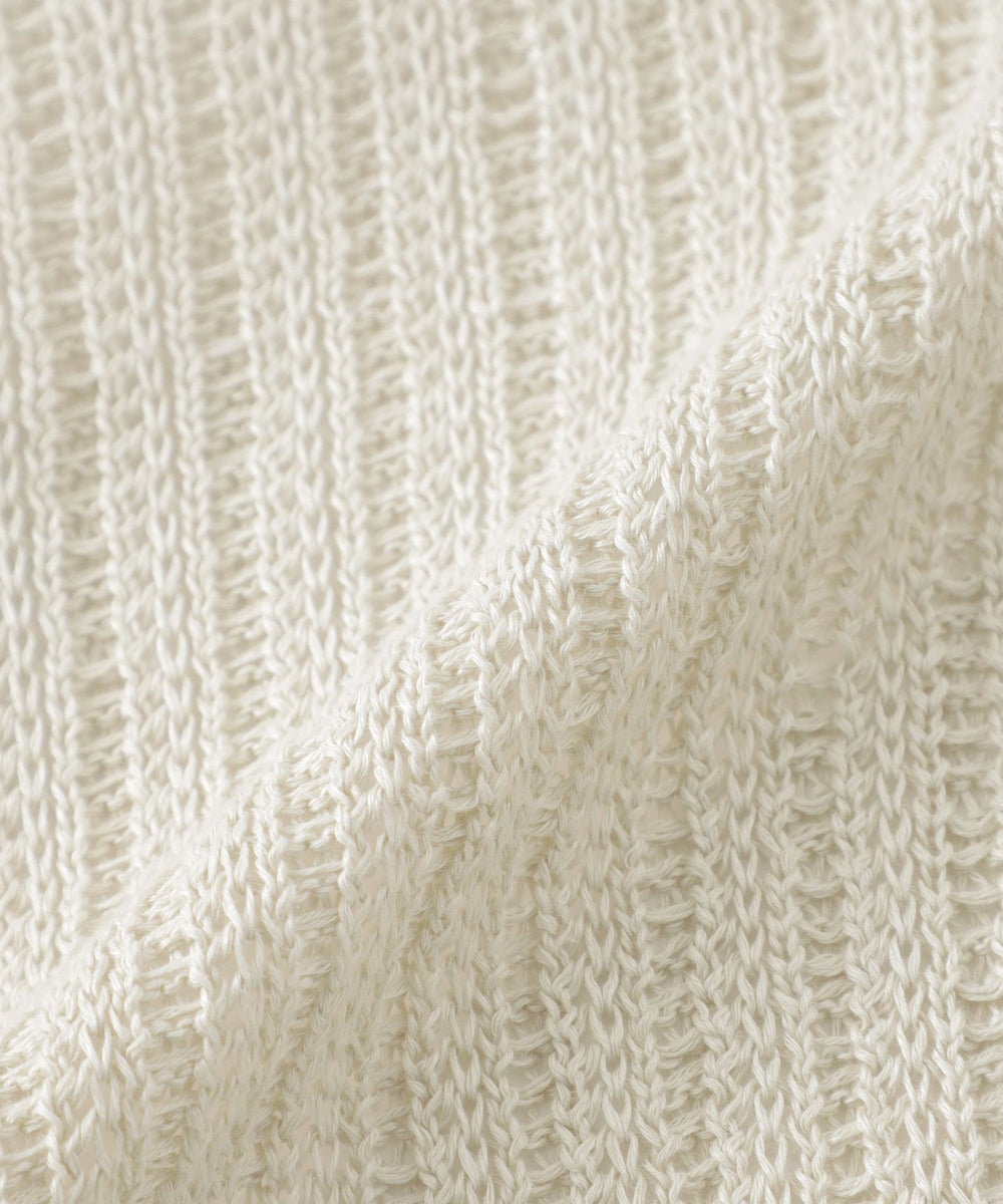 メッシュストライプ状の編地をリラックス感のあるカーディガンに仕上げています。