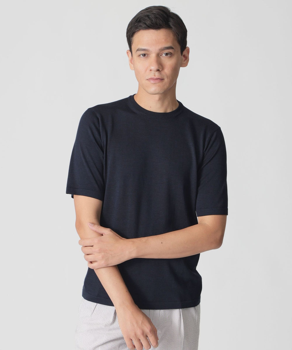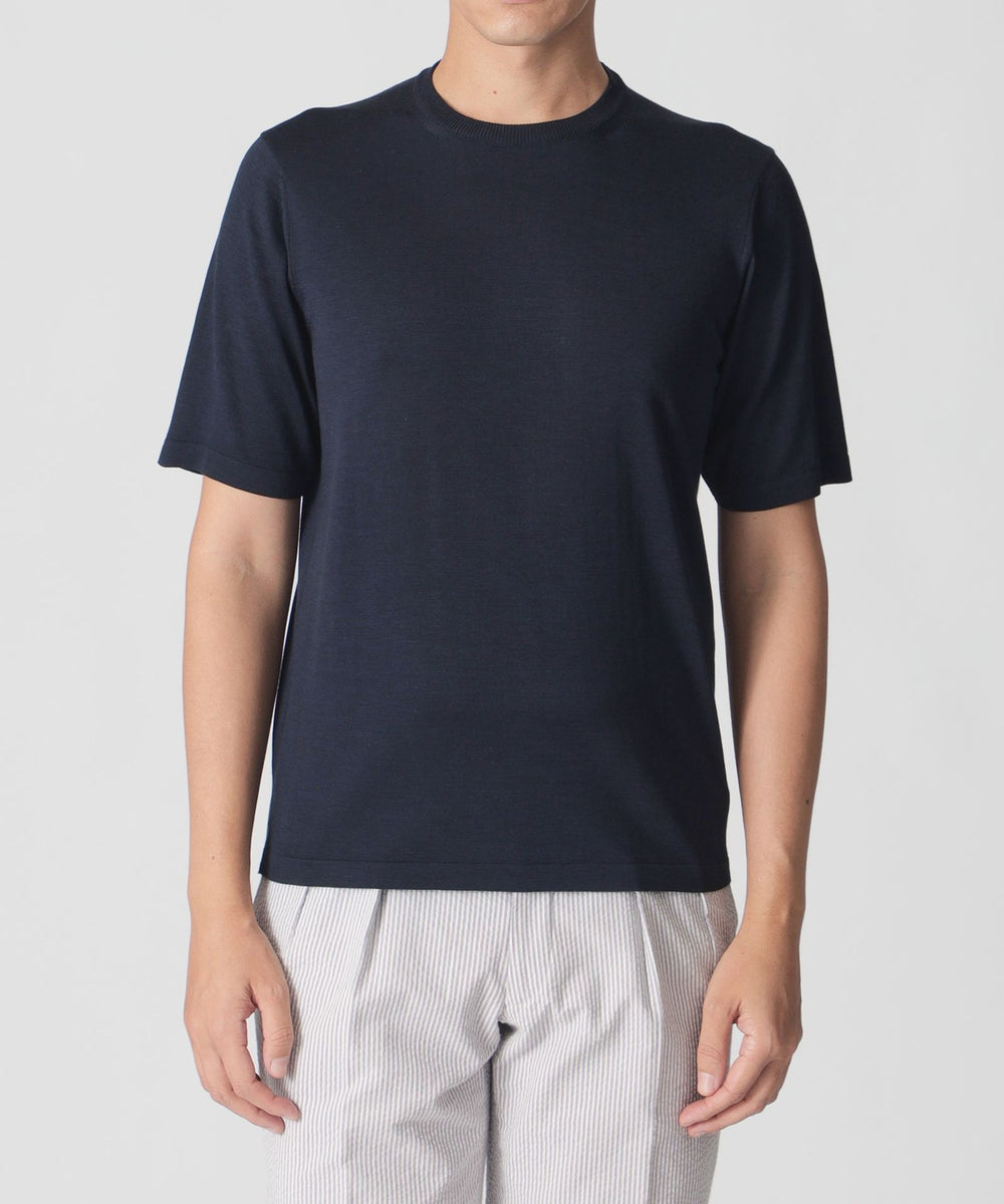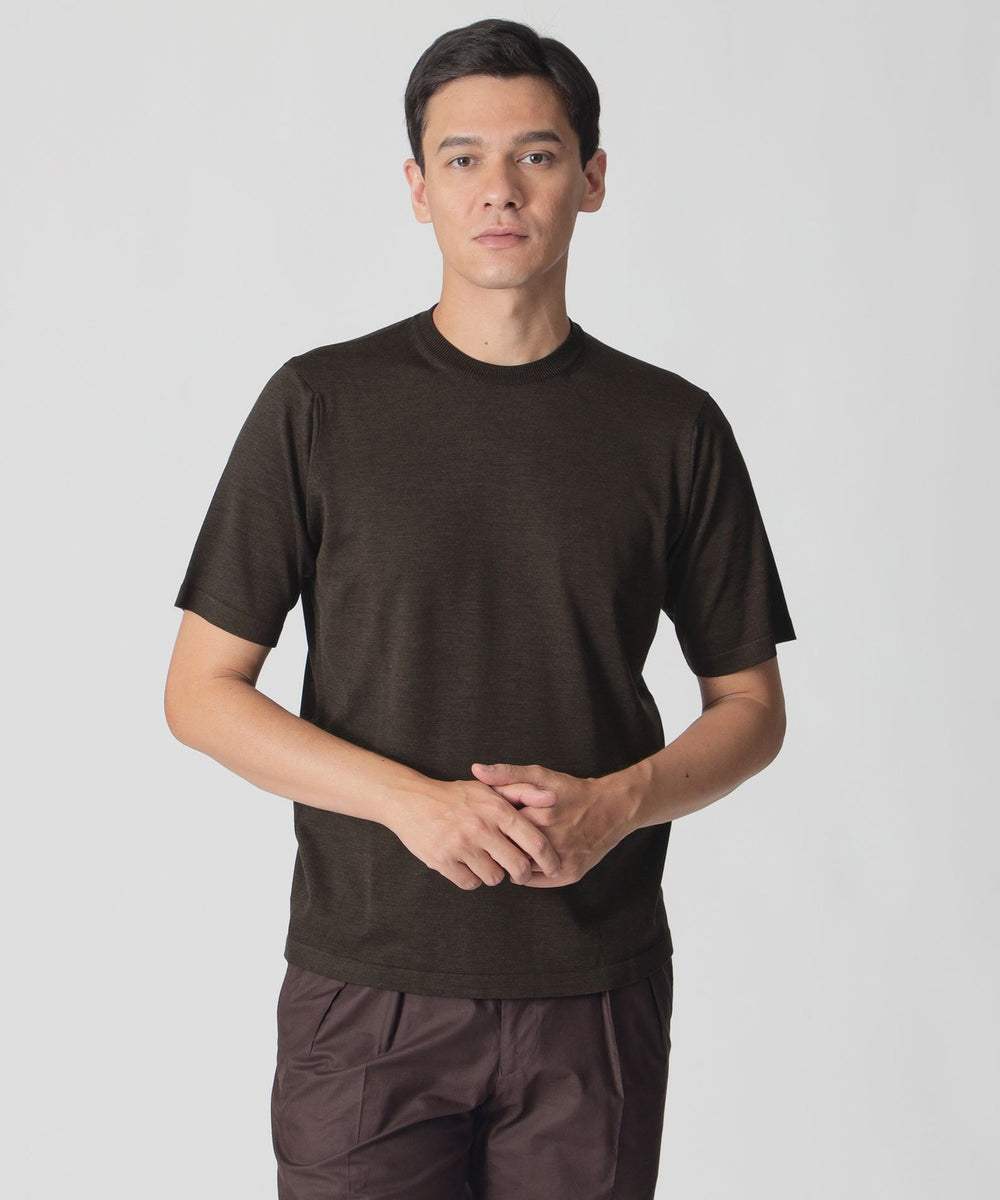 イタリア糸メーカー製のシルクを使用したクルーネックニットTシャツです。