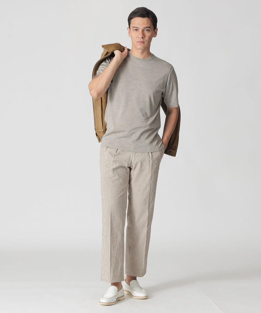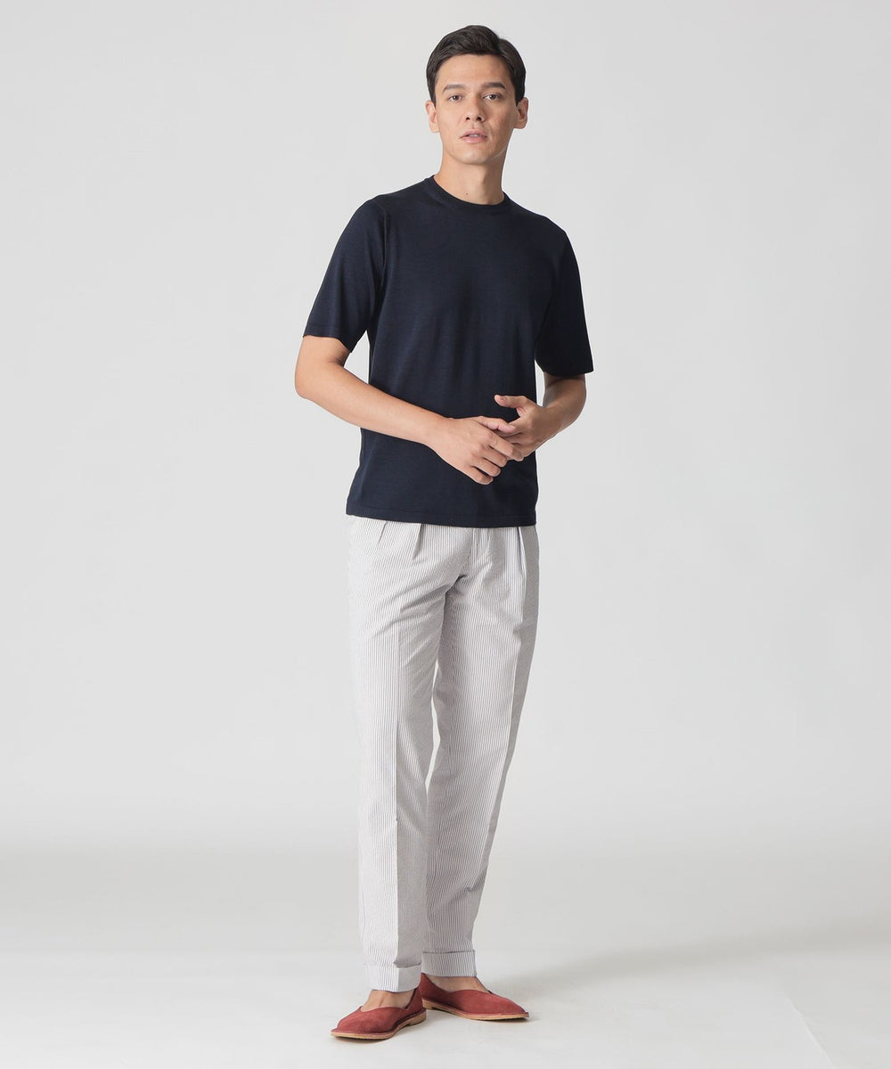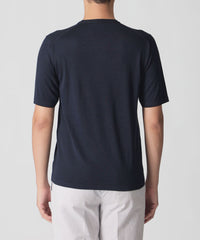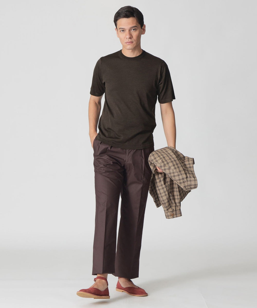 イタリア糸メーカー製のシルクを使用したクルーネックニットTシャツです。