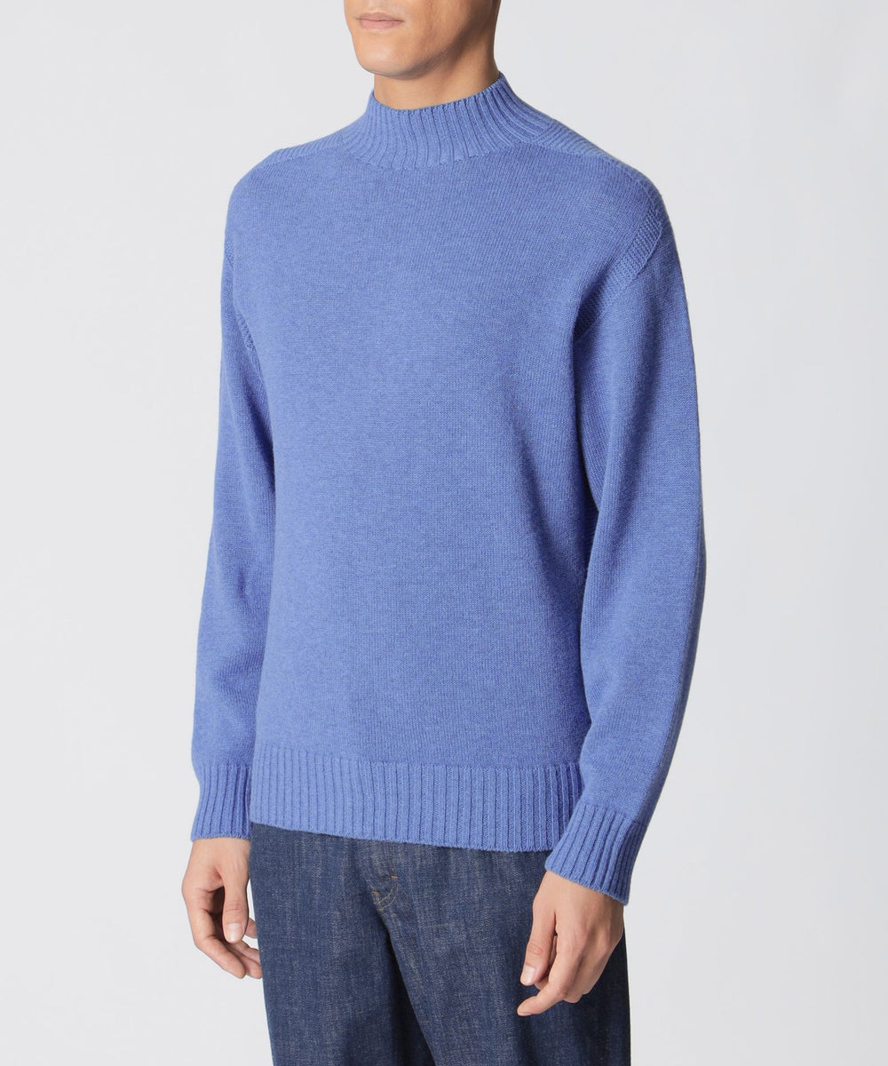 イタリア糸メーカー製メリノウールの「ホールガーメントモックネック」です。