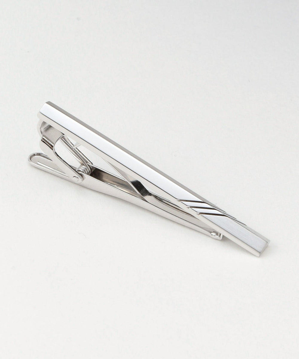 立体感のあるフォルムに3本のストライプのラインが施されているタイバー(タイピン)です。