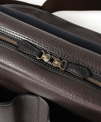 ソフトで上質な肉厚オイルドレザーを使用。素材の良さを最大限に活かすために裏側へ弾力性のある芯材を採用し、柔らかい風合いとハリ感を持ち合わせた仕上がりに。付属のレザーは、使い込む程に、手に馴染みエイジングが楽しめるバケッタレザーを使用。内装にはスエード調の生地を使用することで高級感を演出しました。