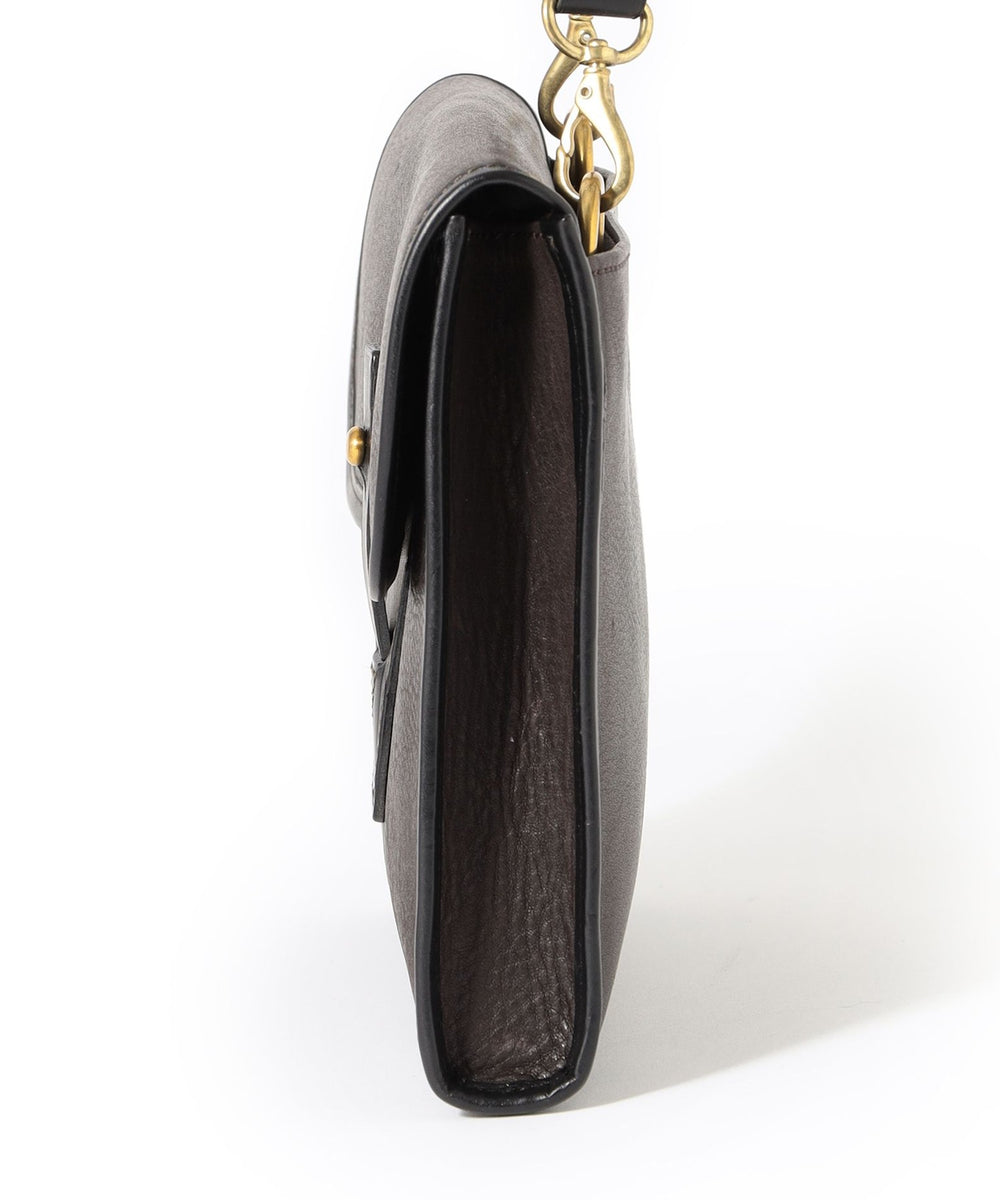 ショルダーひも付きのクラッチバッグデザイン。ドレスのスタイリングに欠かせないクラッチ仕様と、カジュアルな着こなしにもスタイリングできるようショルダーひもを取り外しできる仕様で付けました。