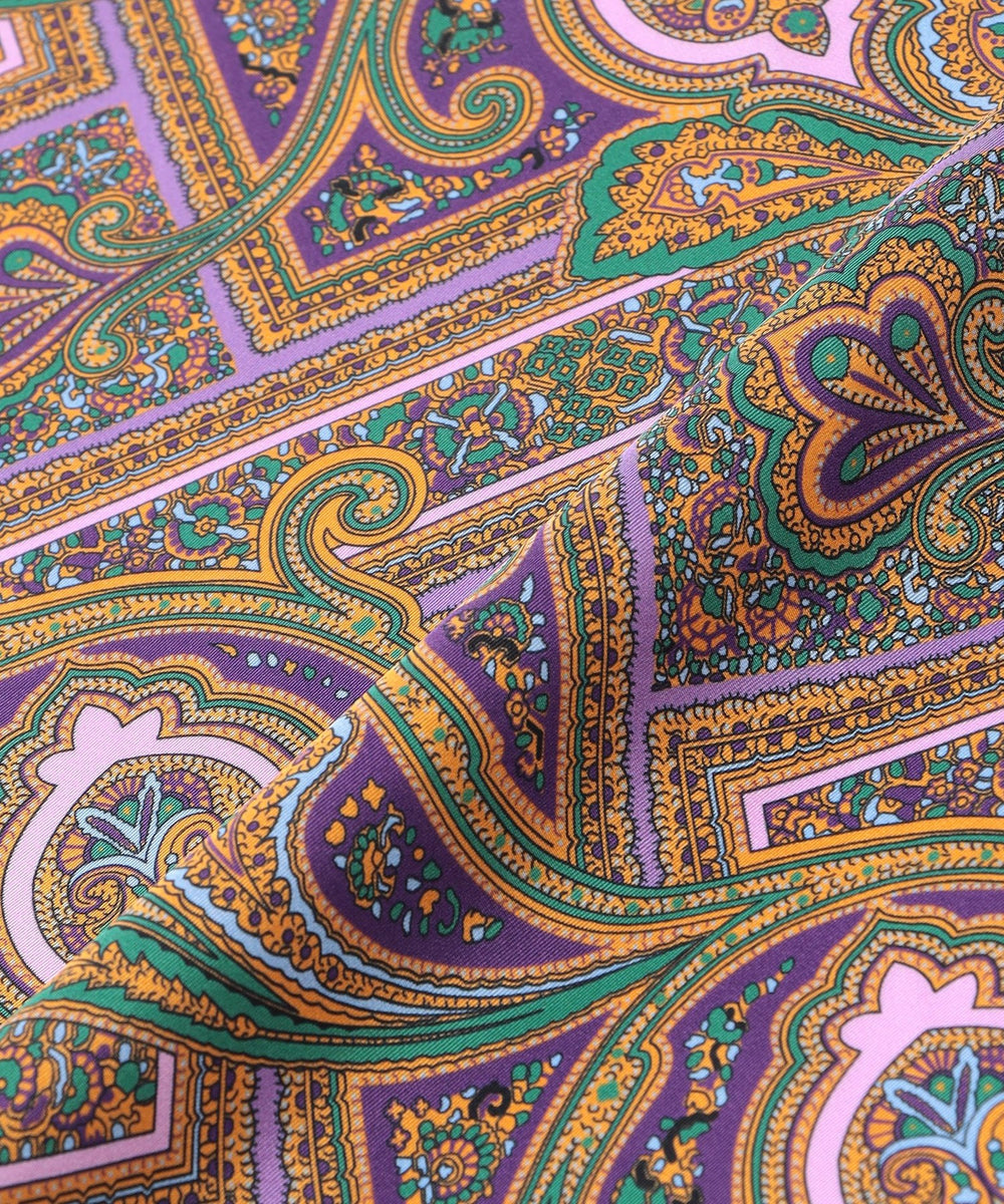 ペイズリー柄プリント スクエアシルクスカーフ(英国製)