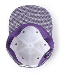 サスティナブルで保型性、イージーケア性、を兼ね備えたプリント素材です。一見無地にも見える小柄のPSロゴモチーフのジオメトリック柄が施されたオリジナルプリントが夏のゴルフ場にエレガントに映えるキャップです。