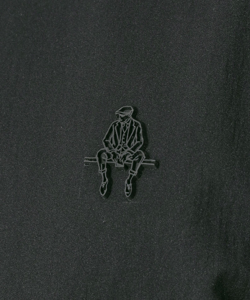 表地にストレッチ性に優れたナイロン素材を使用した、年間を通じて風よけとして活躍する軽量ブルゾン。一見シンプルなデザインですが、胸に表地と同系色MOFシリコンワッペンを、背中にはPaul Stuartのドットデザインロゴを同系色プリントを施し、シックな雰囲気のあるアイテム。