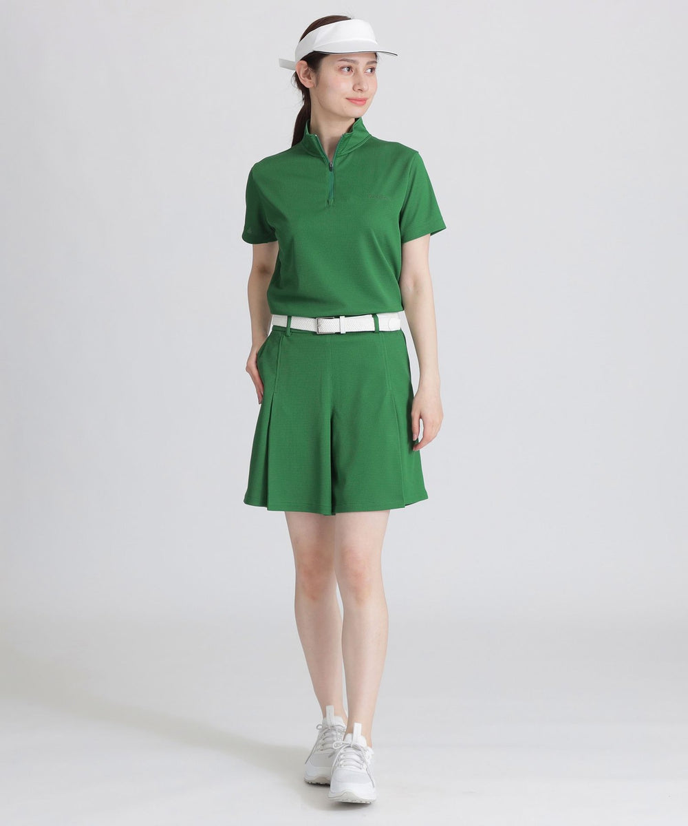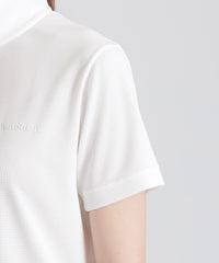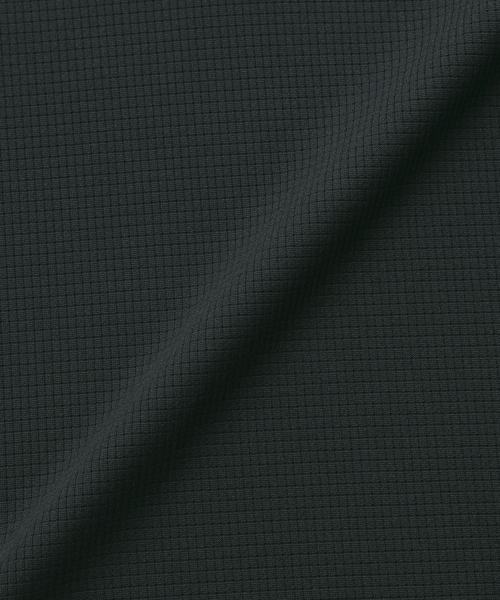 生地を編み込む際に透けが出ない程の非常に細かい穴を開けることで、通気性に優れ肌離れの良さが感じられるジャージ素材となっています。吸水速乾性が高く湿度の高い梅雨時期から汗をかく真夏のゴルフシーンでより快適にプレーして頂けます。