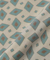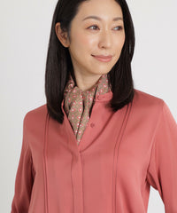 秋らしいニュアンスカラーの幾何柄が優しく襟回りを彩ります。
