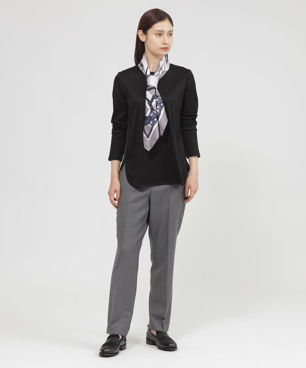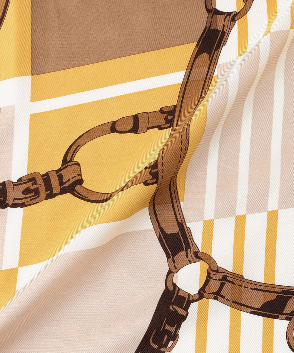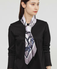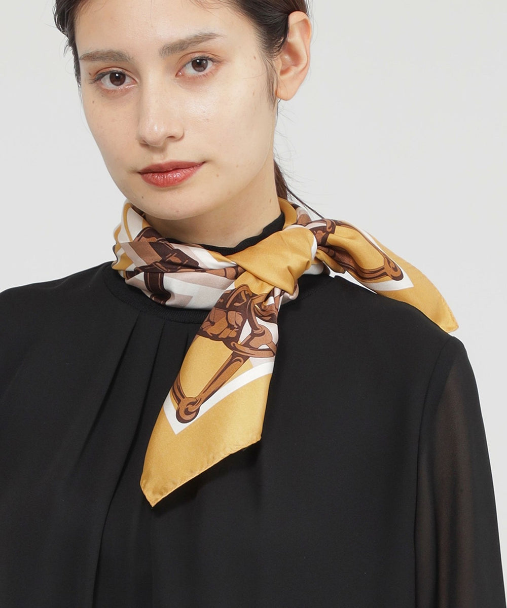 スクエア型で首元に巻いたり、バッグに結んだりアクセサリー感覚でアレンジを楽しめます。