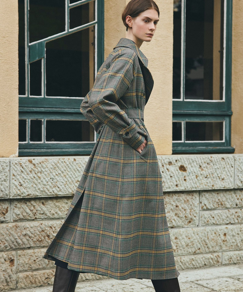 ヨーク部分や後ろ裾プリーツの内側にボタンを施したインバーテッドプリーツなどトレンチコートならではのディテールを程良く残し、凛とした一着に仕上げました。