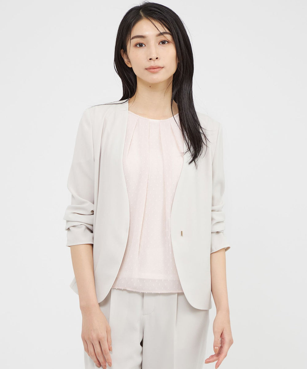 同素材のパンツ(K1R10603/ K1R11603)とのセットアップで上品なスーツスタイリングもおすすめです。