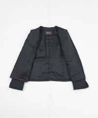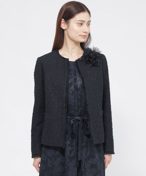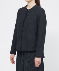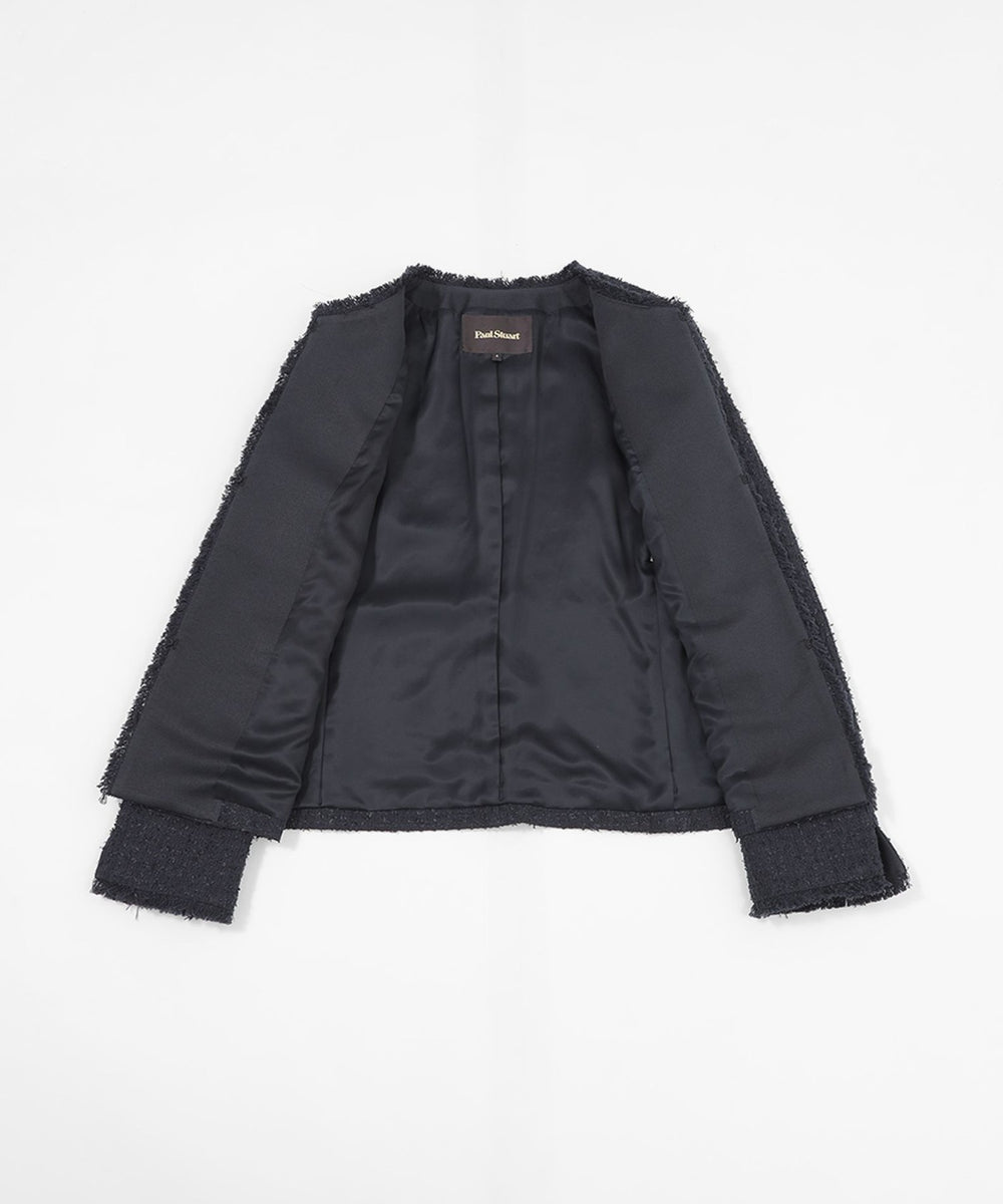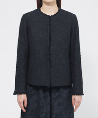 上品な素材をきちんと感のある印象に仕上げたノーカラージャケットです。