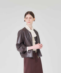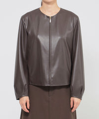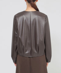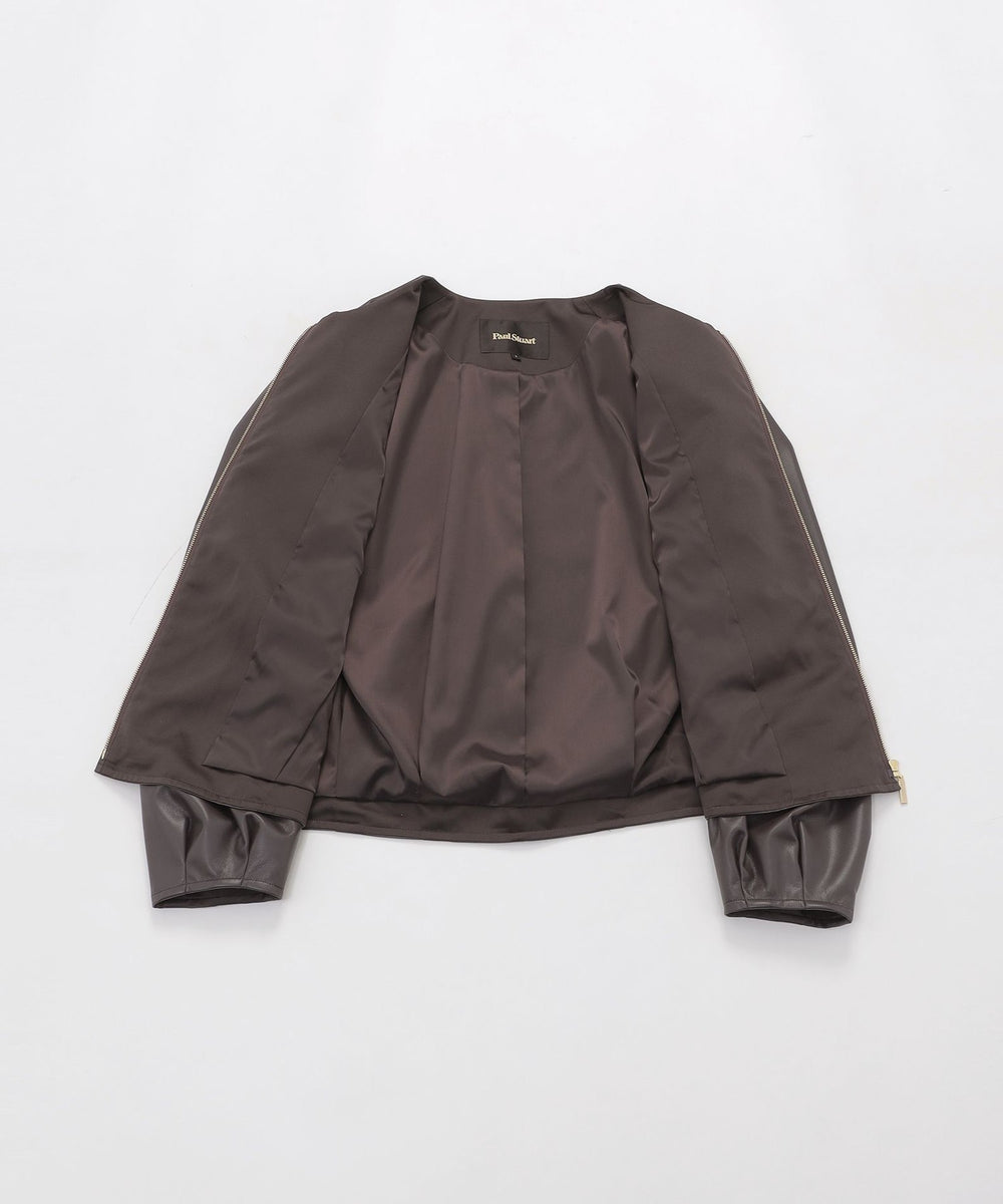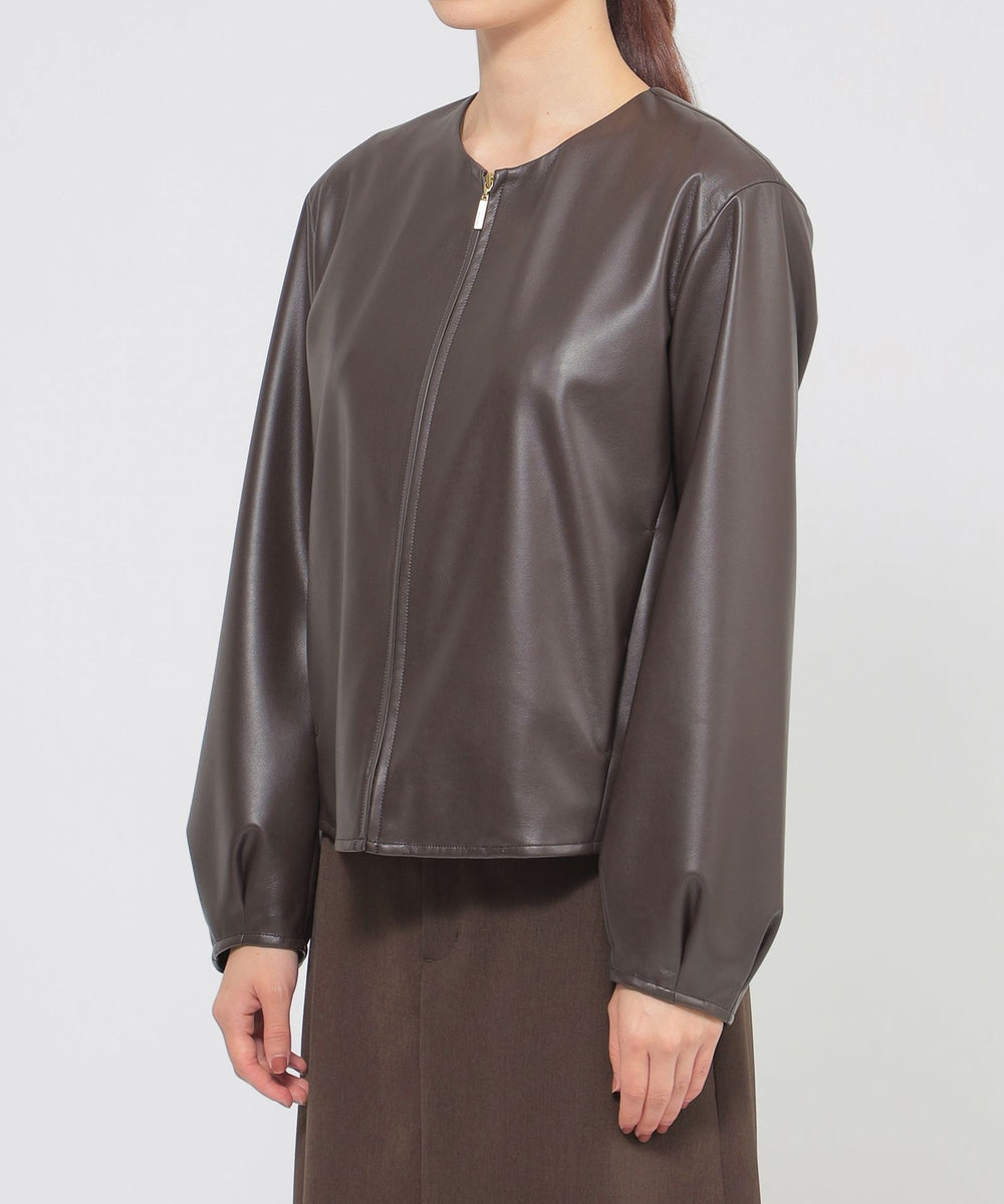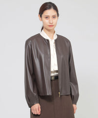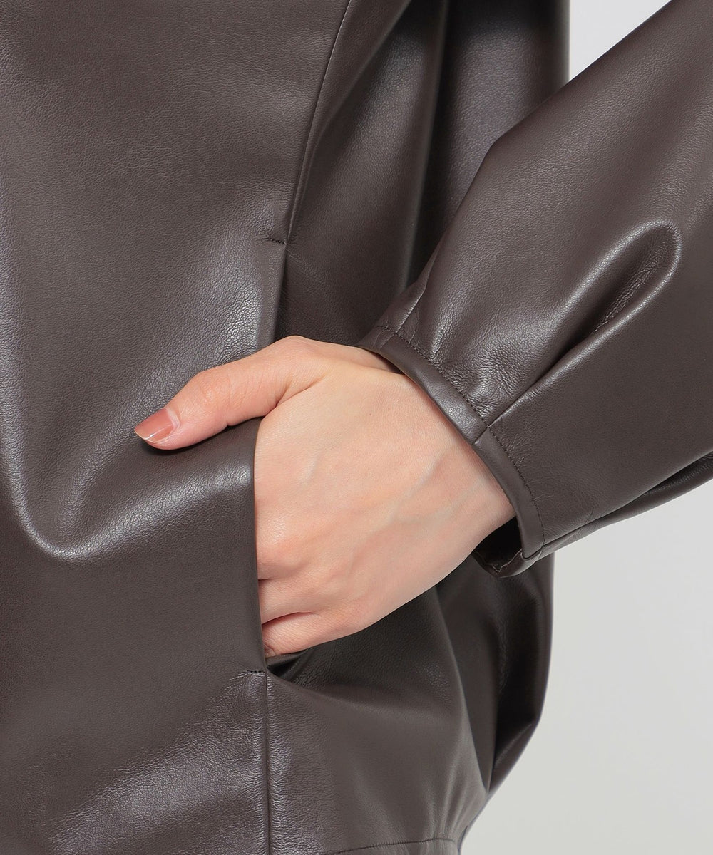 <柔らかな肌触りが特徴のシンセティックレザーブルゾン>