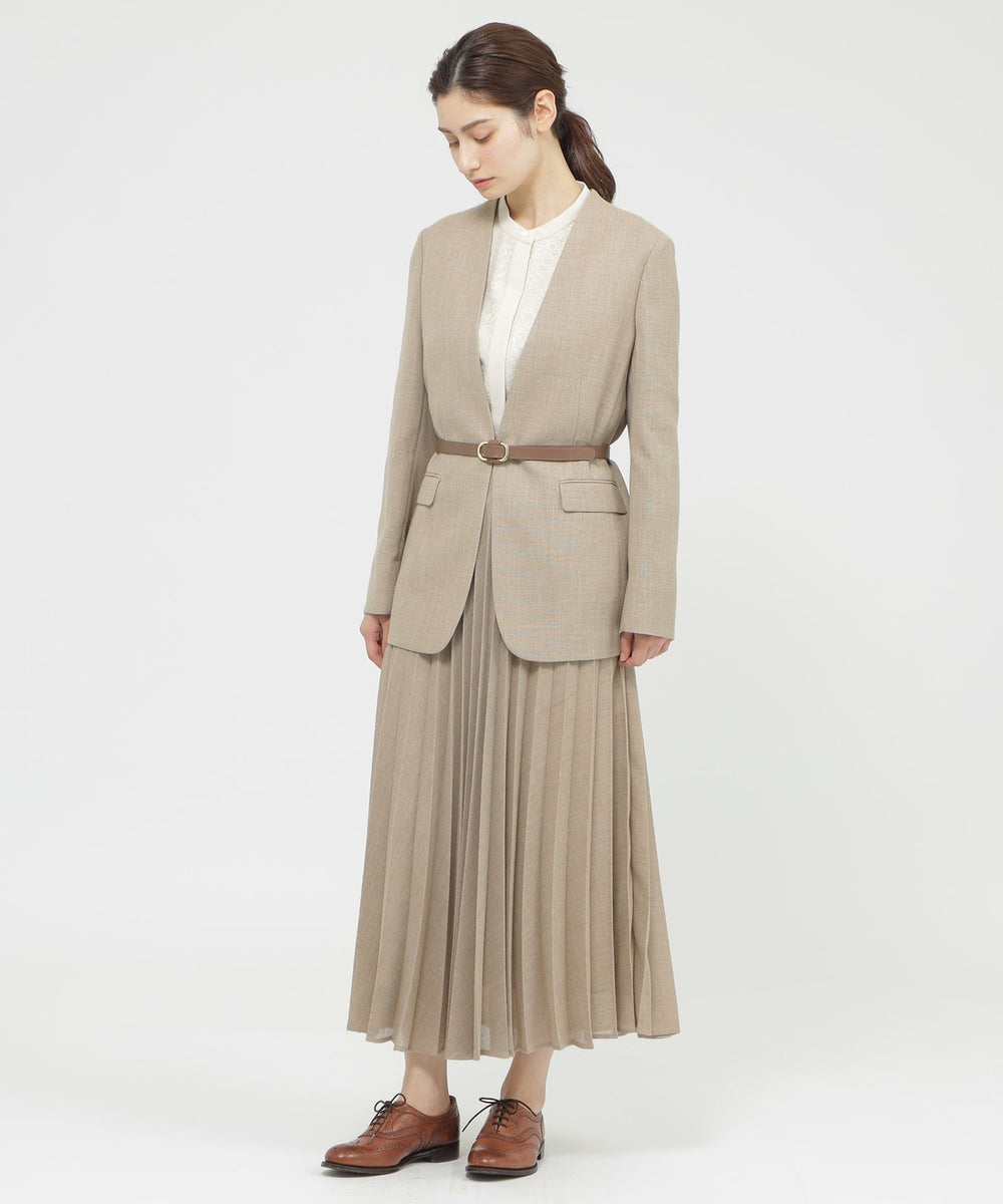リネンライクなスカートと合わせてセットアップのようなスタイリングもおすすめです。