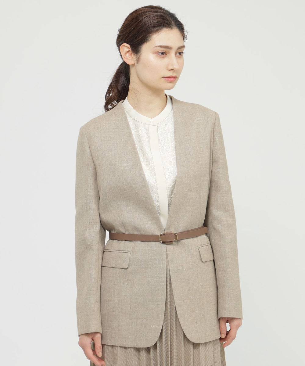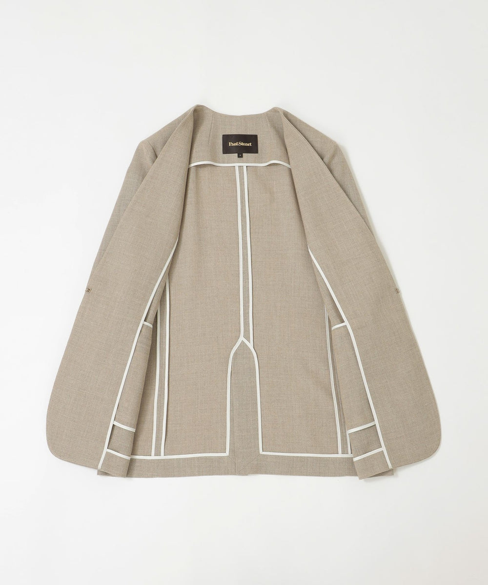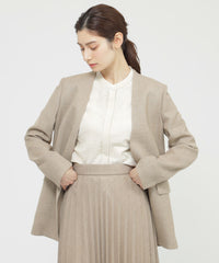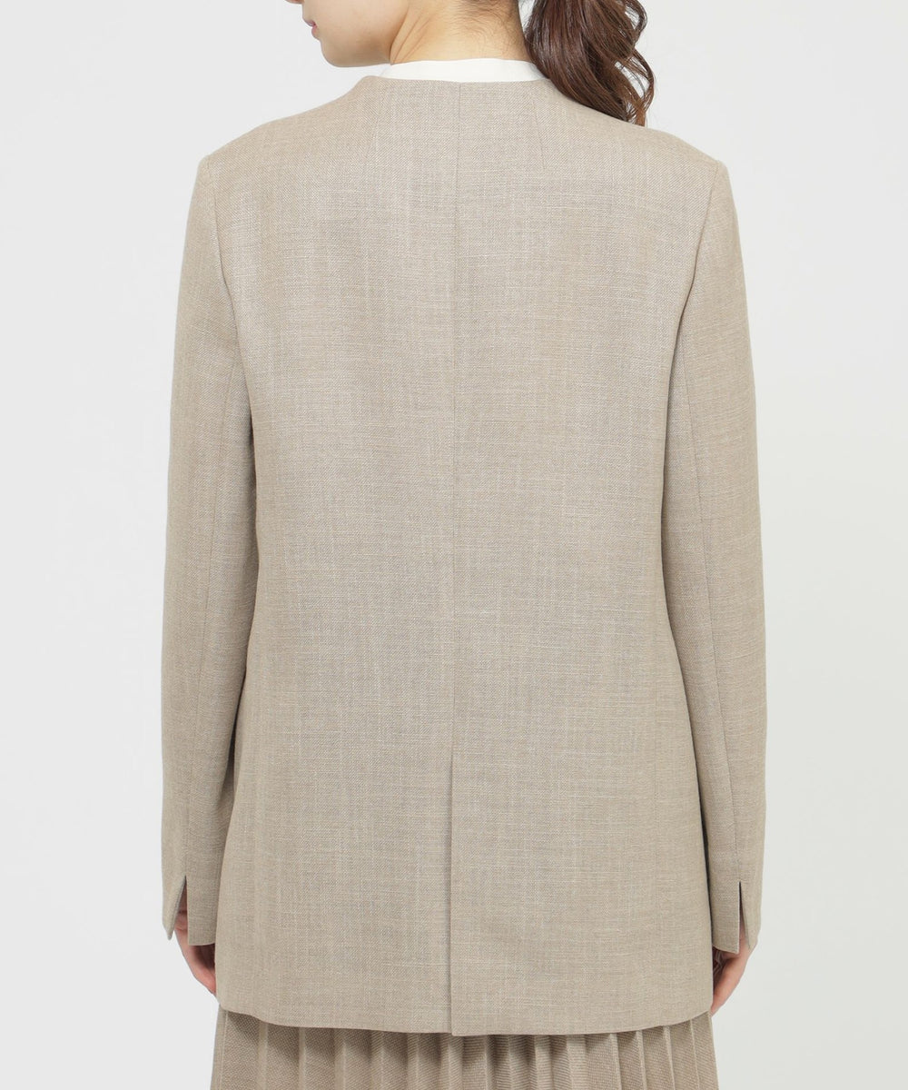 オーバーサイズながら羽織るだけできちんと感のあるデザインに仕上げたノーカラージャケットです。