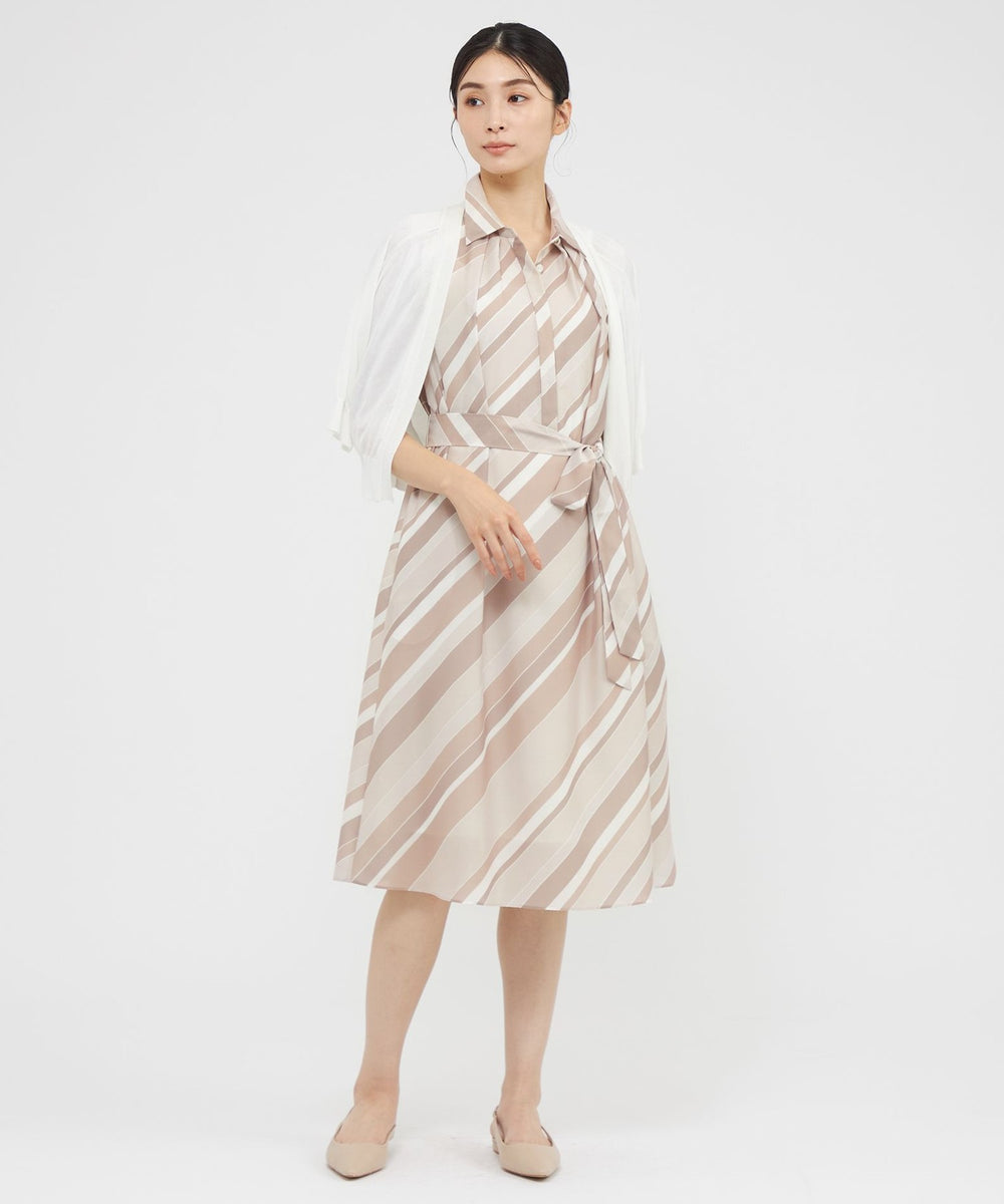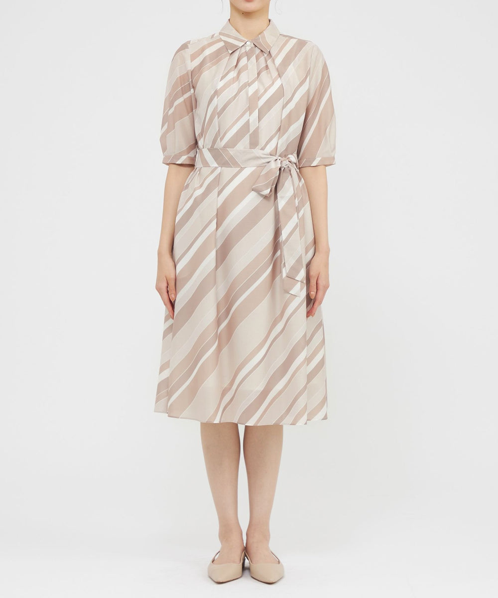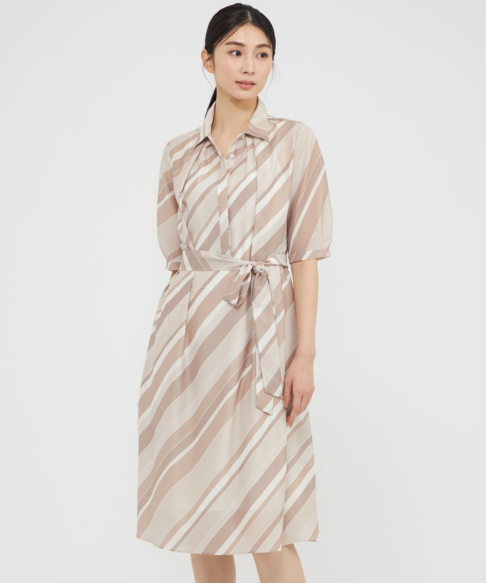 シャツ襟デザインできちんと感のあるプリントワンピースです。