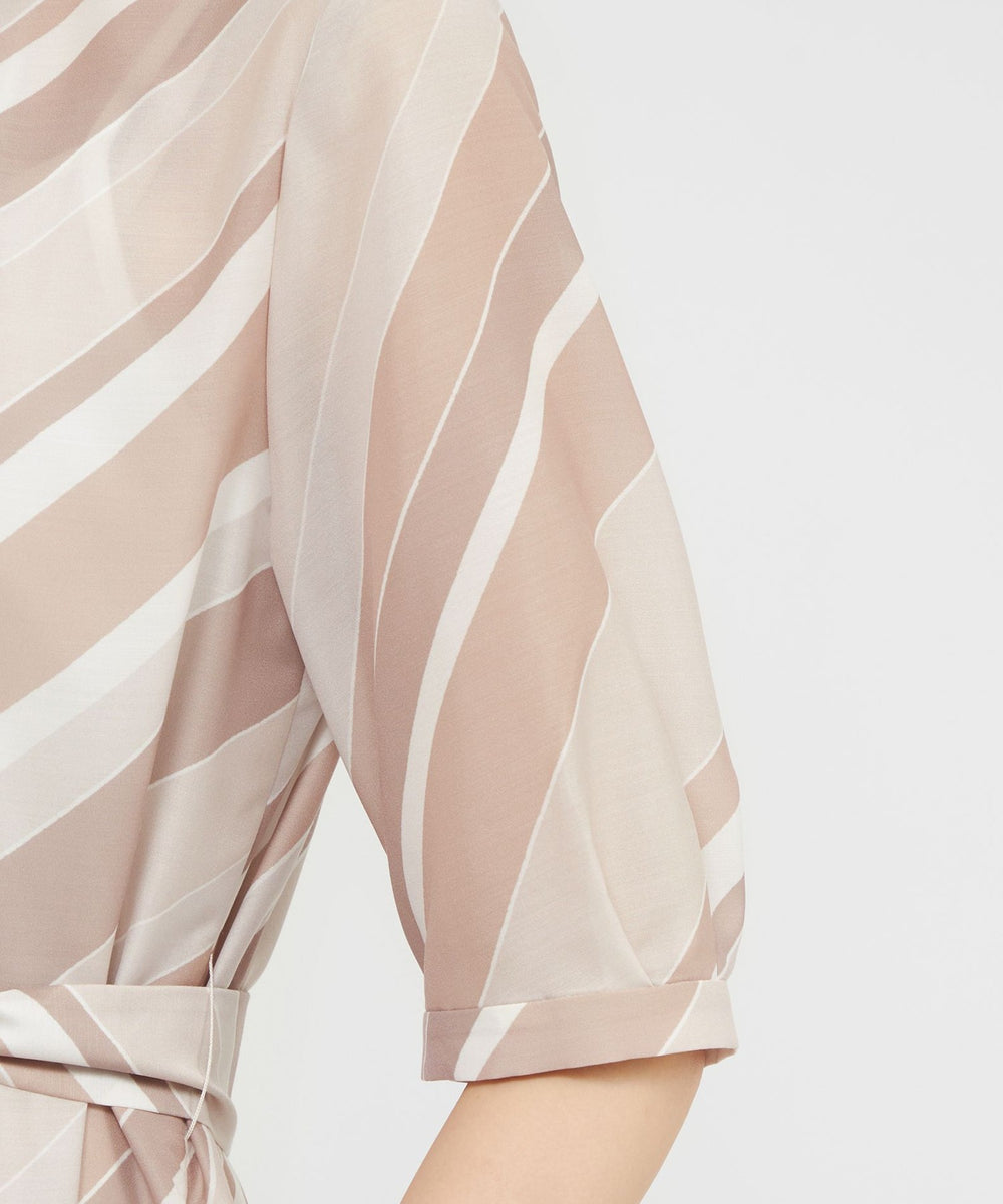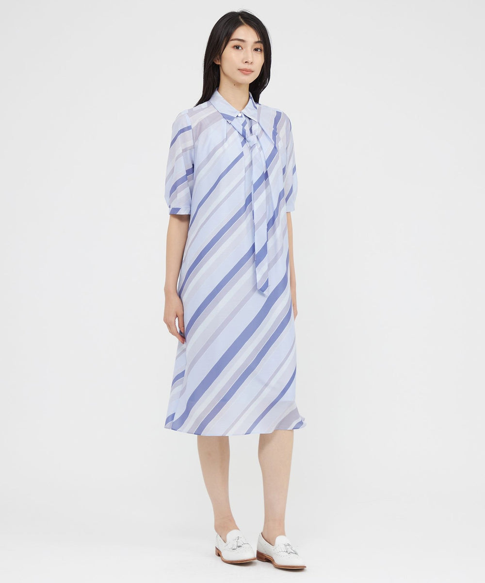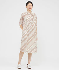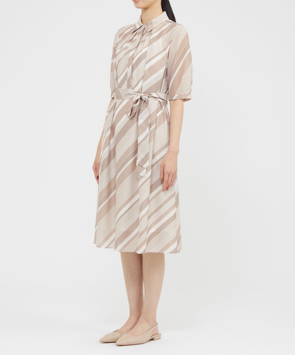 シャツ襟デザインできちんと感のあるプリントワンピースです。