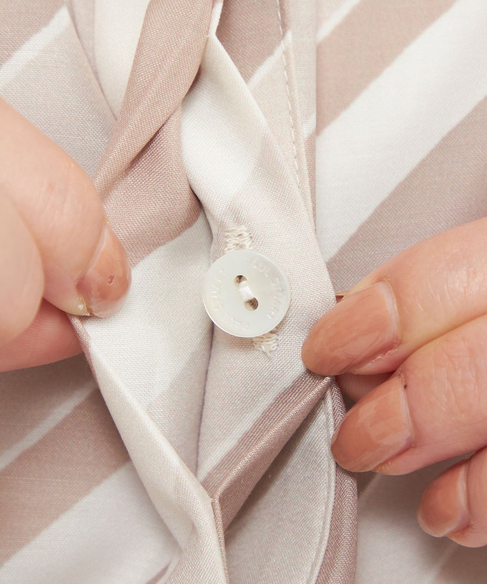 イージーケアな素材ながらも柔らかな風合いと天然繊維のようなナチュラルな表情感をあわせもつローン素材を使用しています。