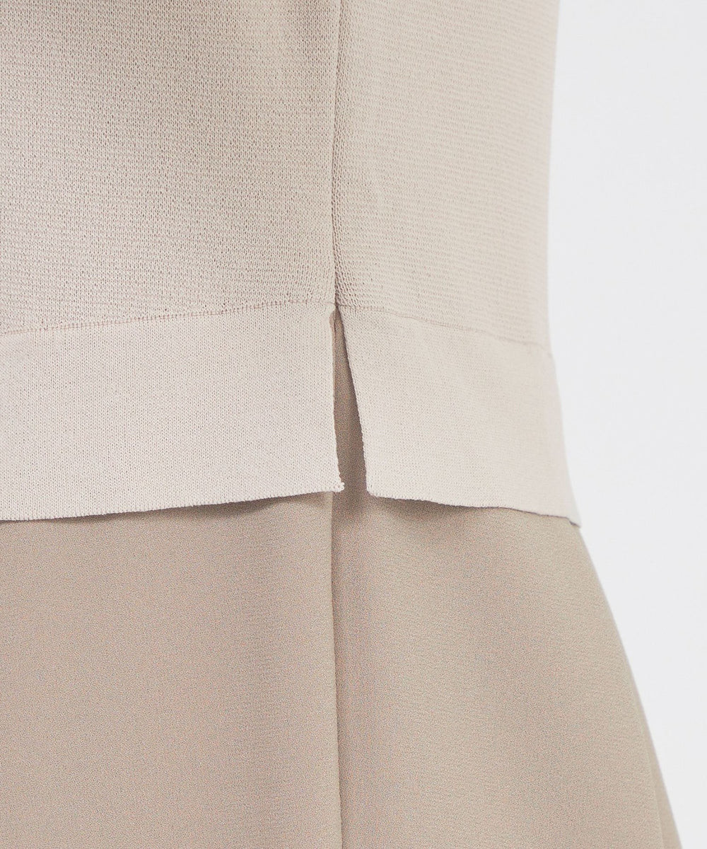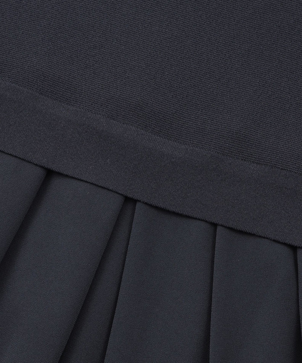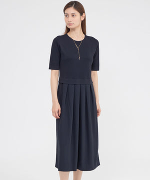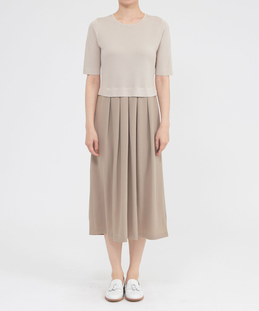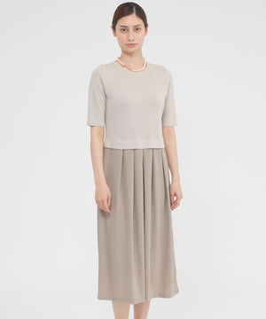 ニットと布帛のタックスカートをドッキングしたワンピースです。