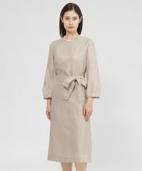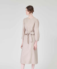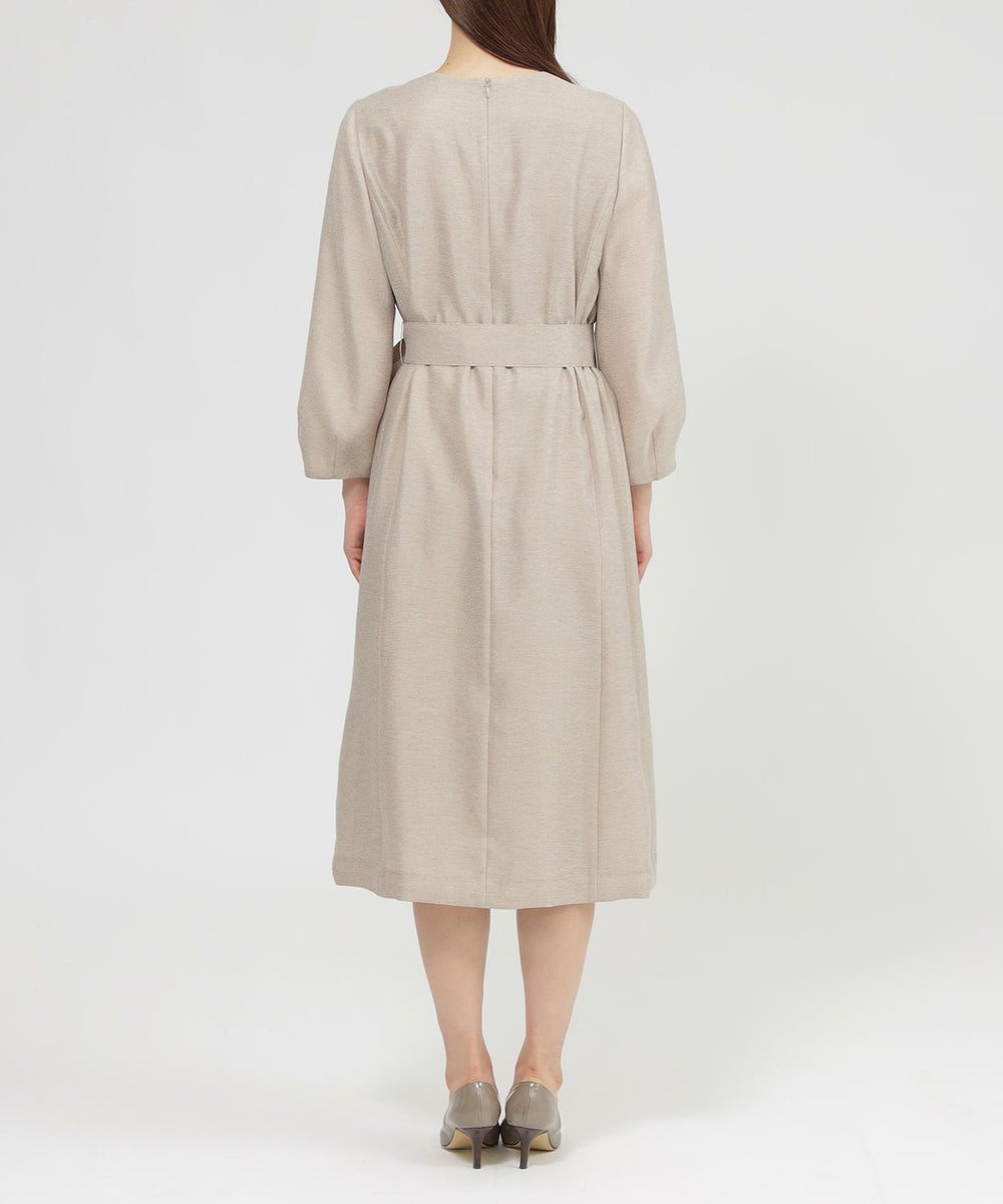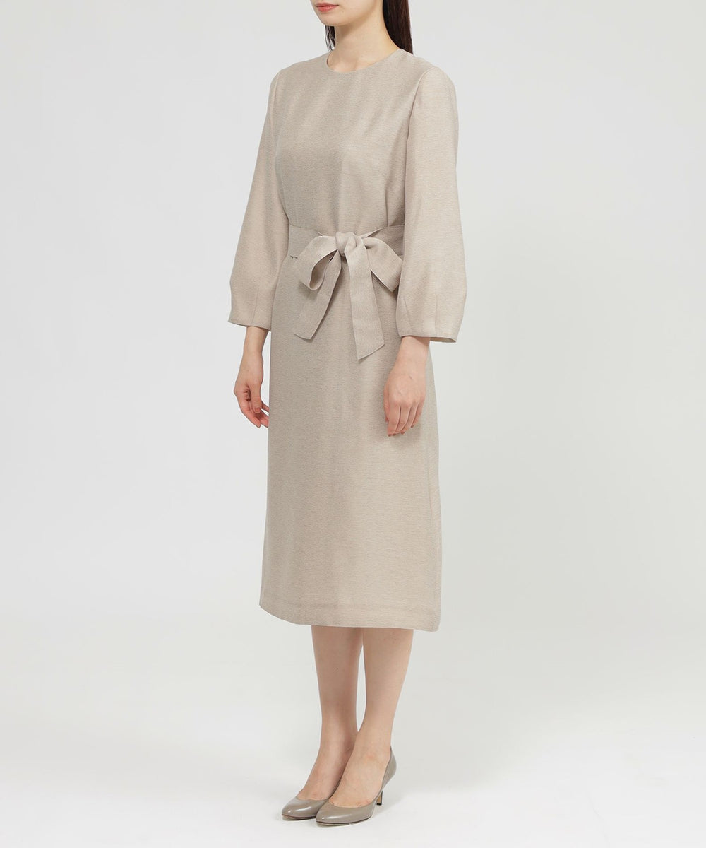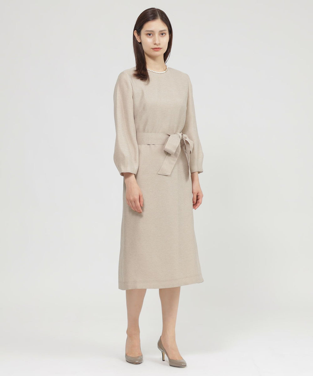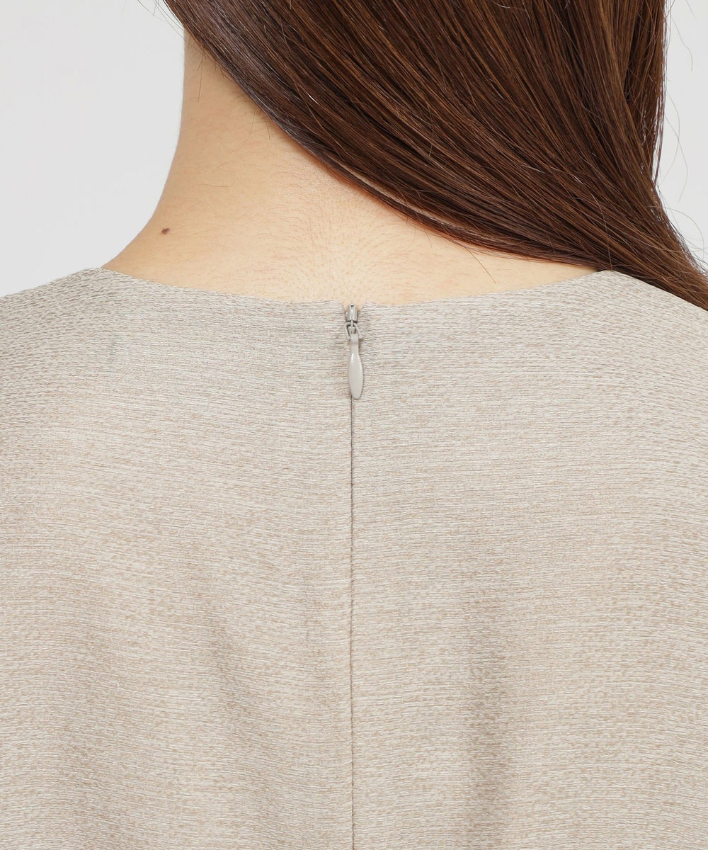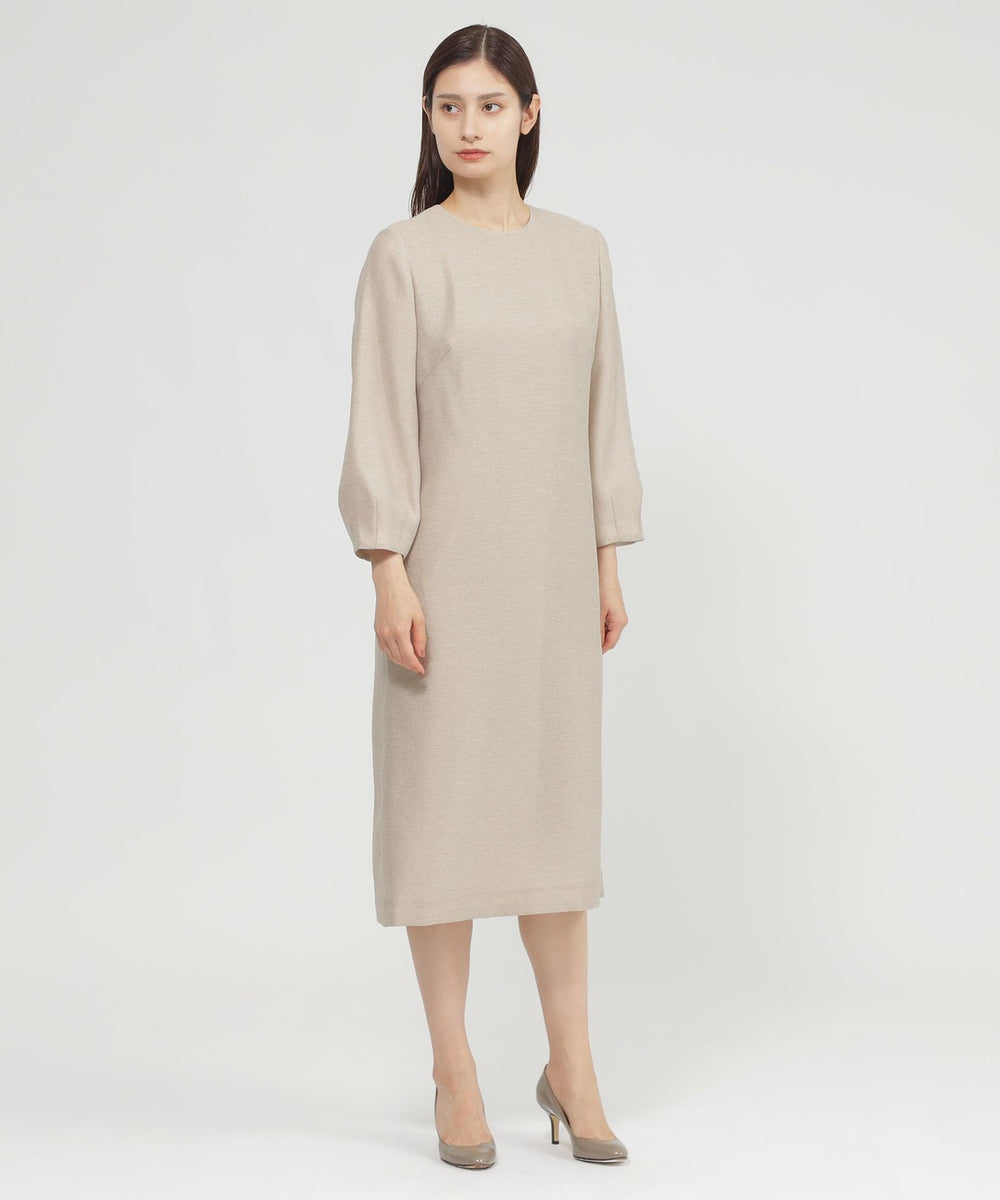 襟はクルーネックですっきりとさせつつ、袖に程良いふくらみをもたせ、エレガントかつ優しい雰囲気を演出します。