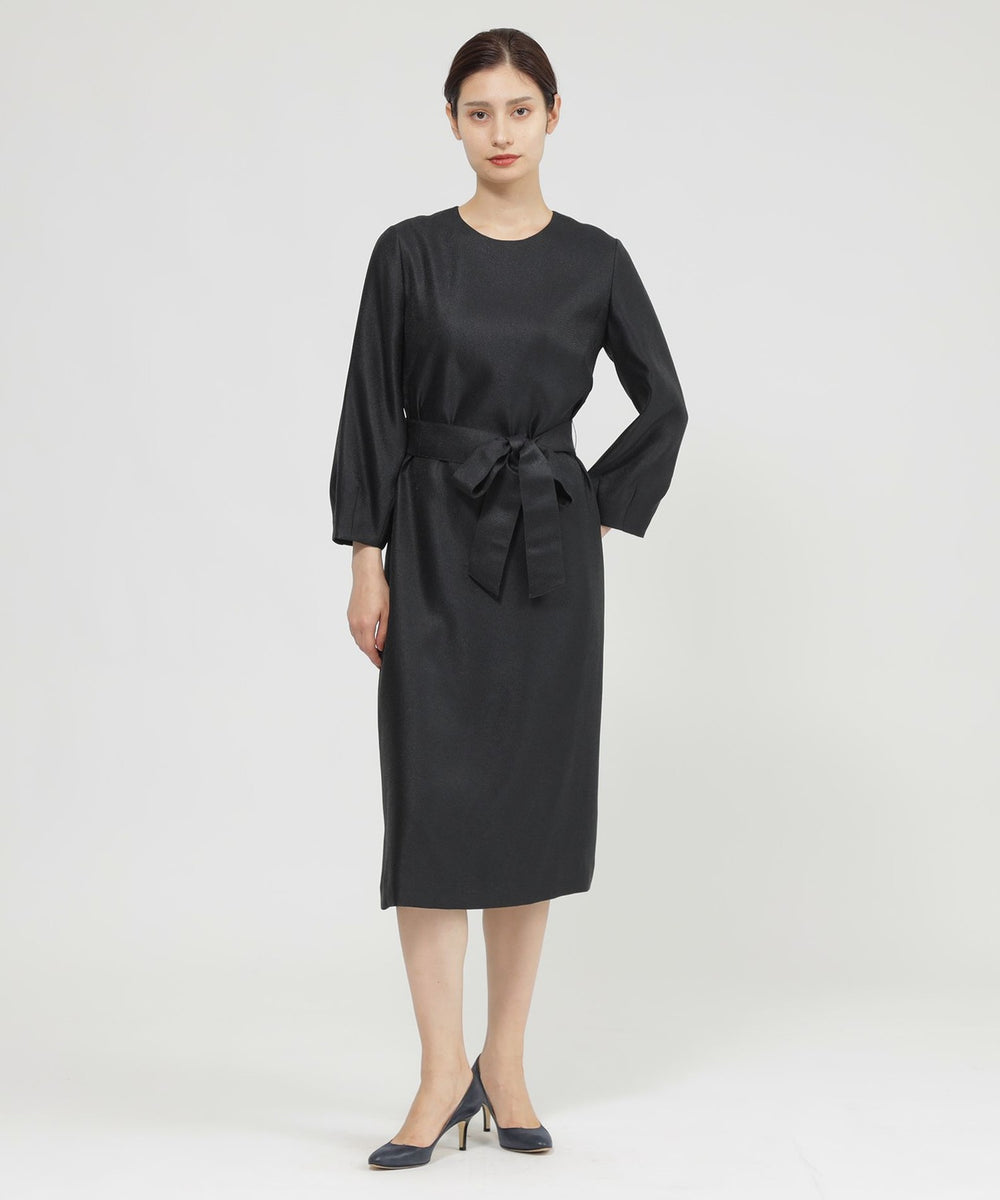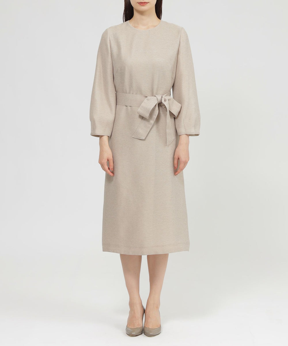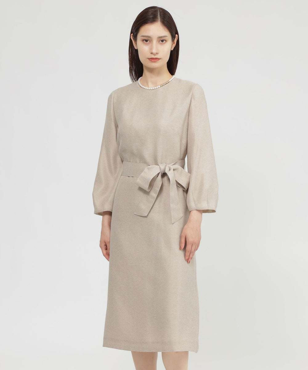 シンプルながらも上品な印象を与えるサック型シルエットのワンピースです。