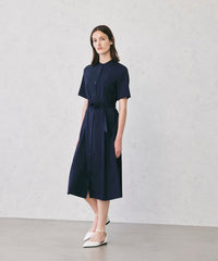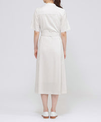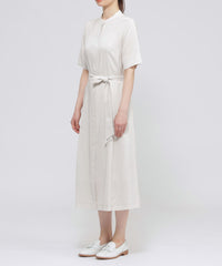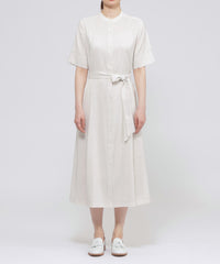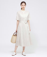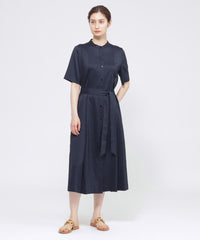 バンドカラーで襟元をすっきりとさせたワンピースです。