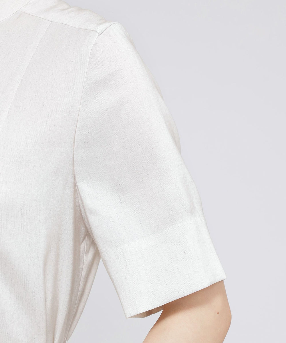 麻の天然素材の風合いがありつつ、シワになりにくい素材を使用しています。