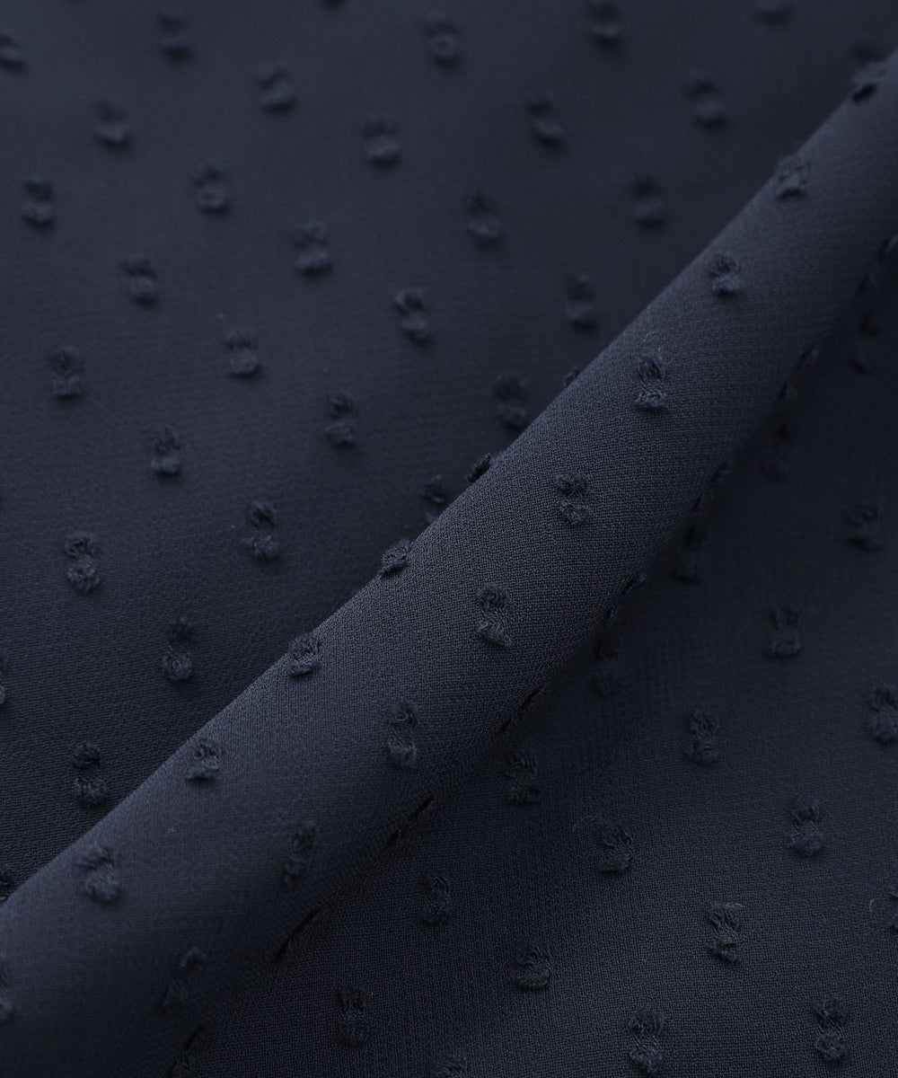 布帛部分は、薄手のシフォンジョーゼットにカットジャガードドットを表現した素材を使用しています。