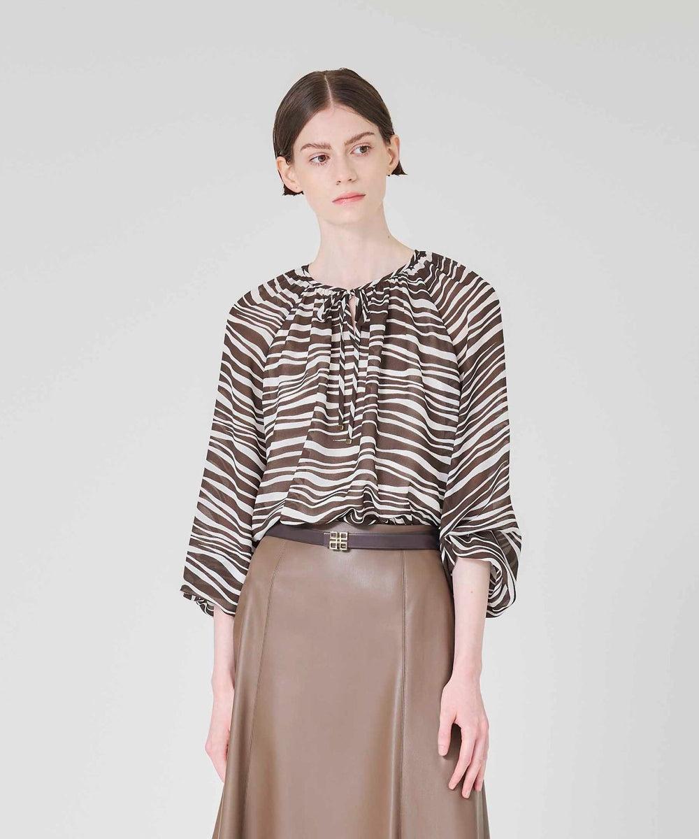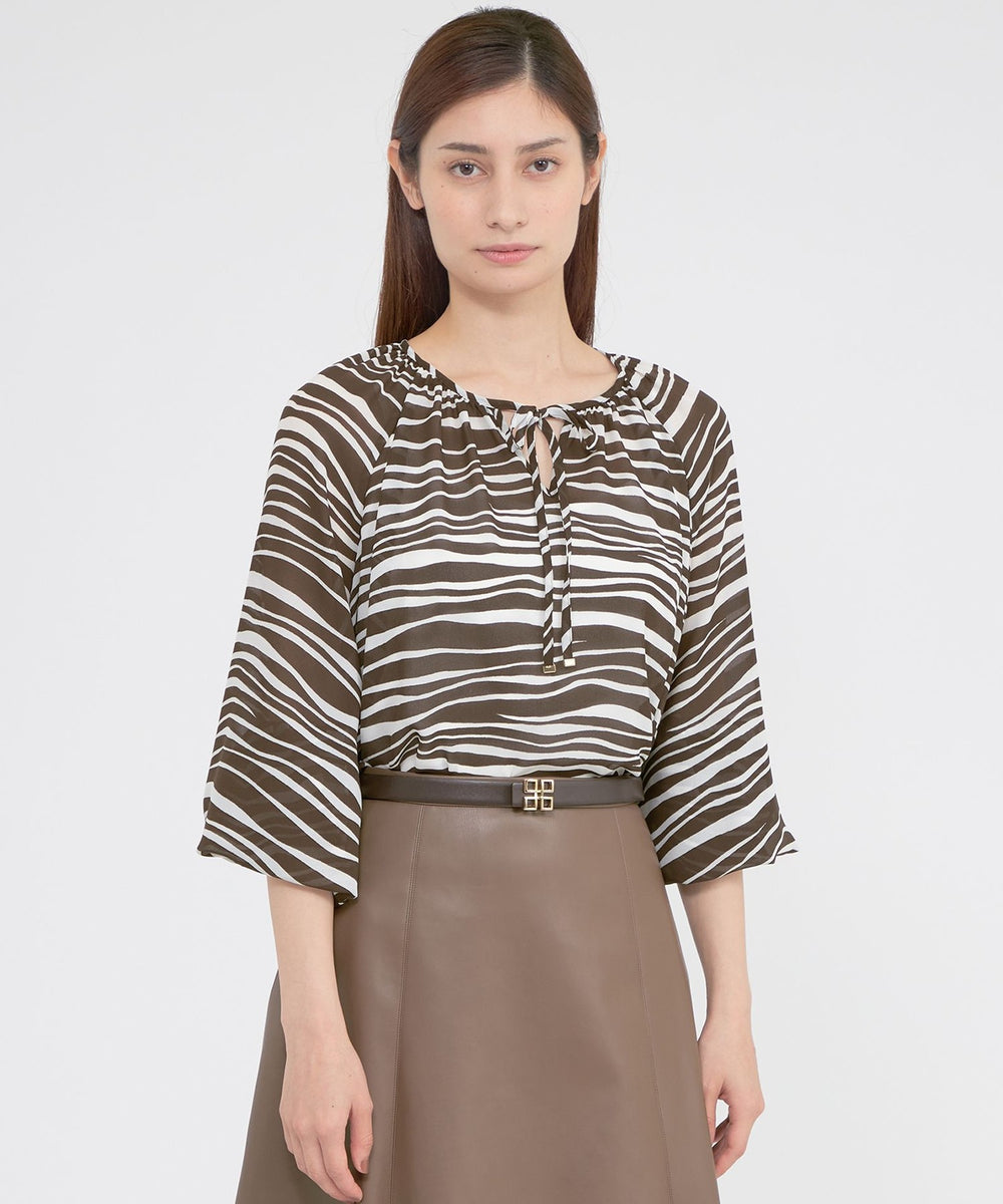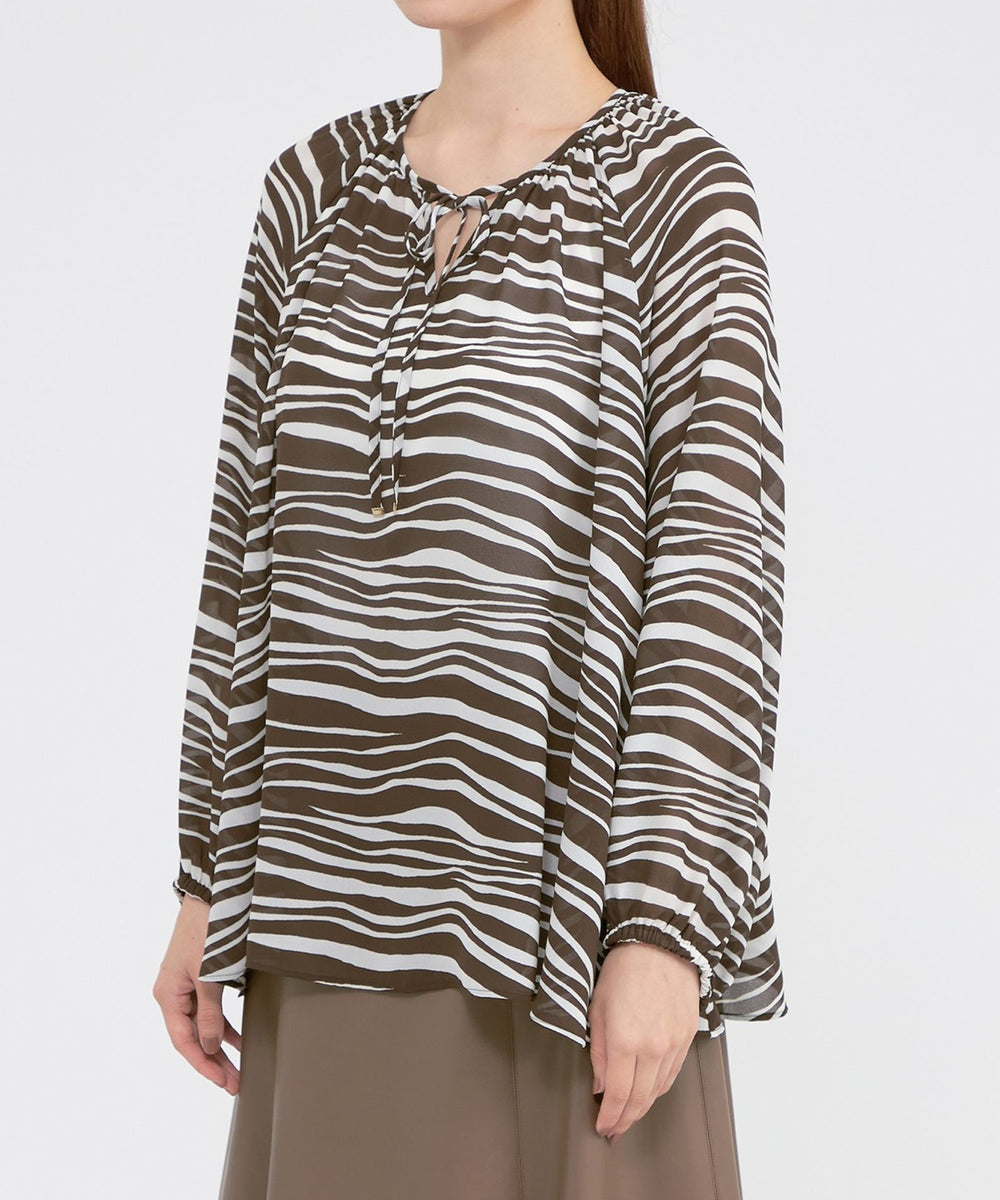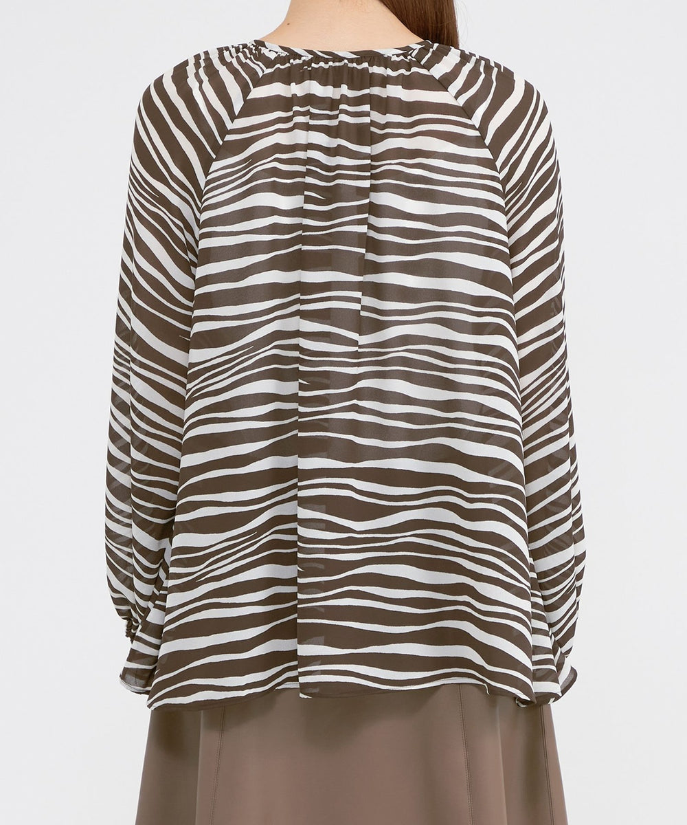 Paul Stuart 【ウォッシャブル】ストライプアニマル ブラウス ¥42,900税込