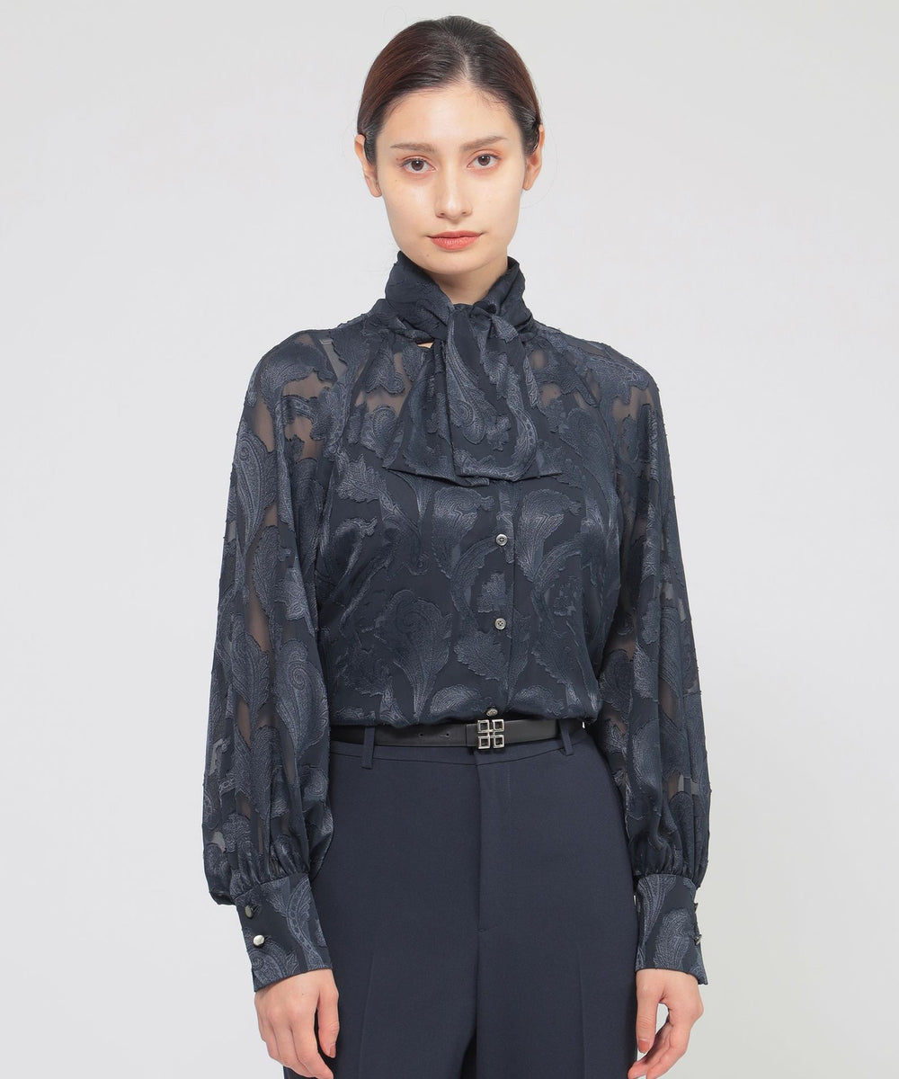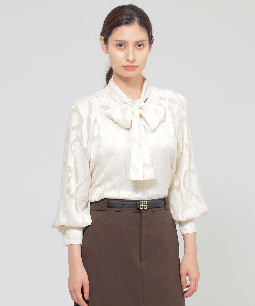【eclat掲載】【ウォッシャブル】シフォンカットジャカード ブラウス