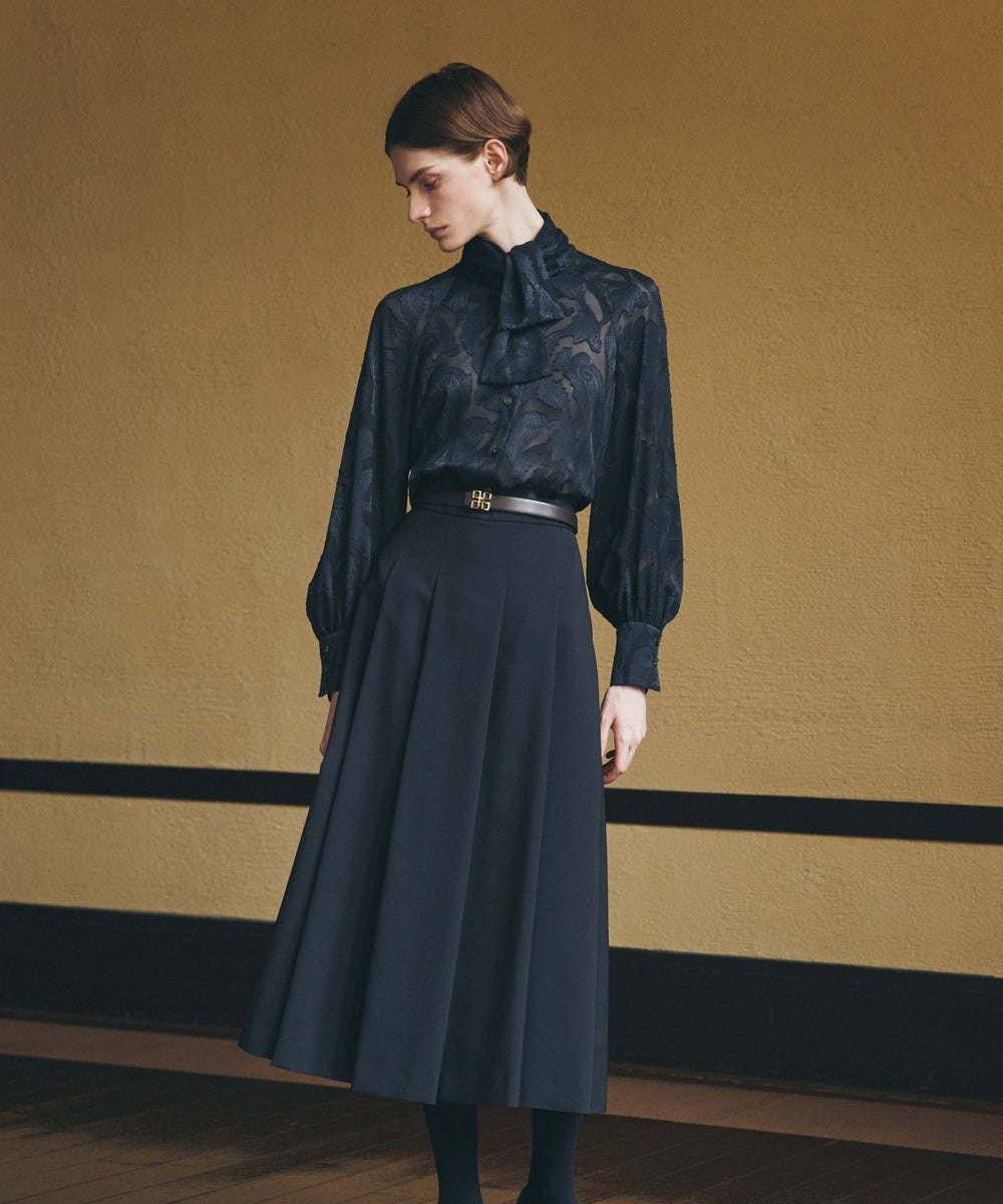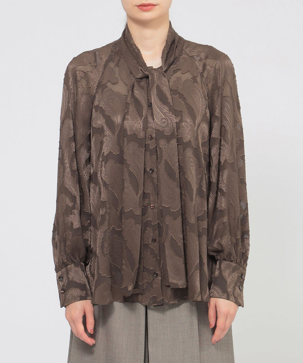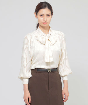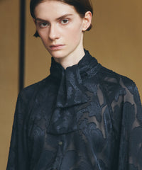 <繊細なジャガード織りが上品なラグジュアリーブラウス>