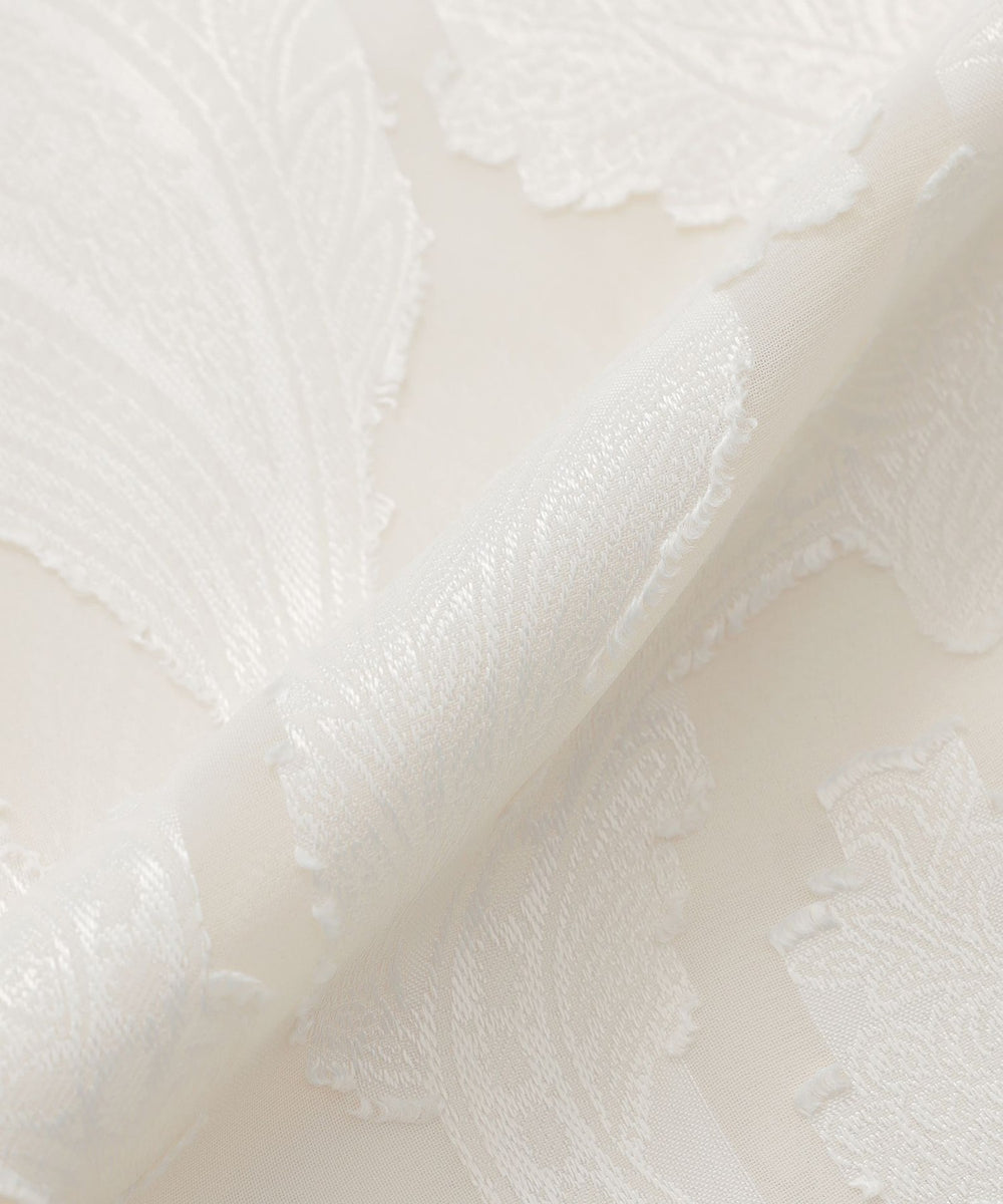 シアー感のあるシフォンジョーゼット素材をベースに、繊細な表情のあるジャカード織りを施した素材を使用しています。