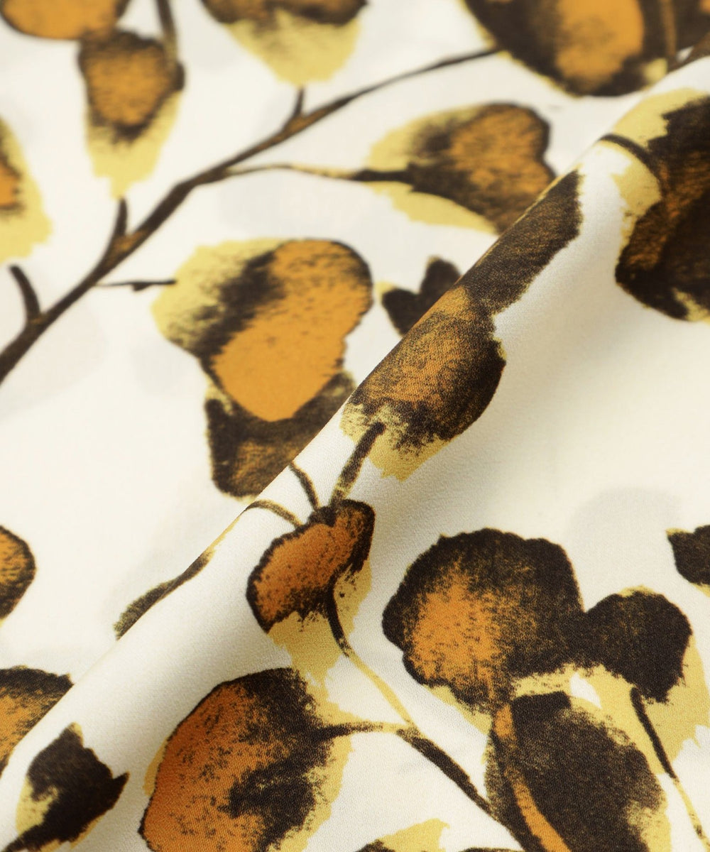 目を惹くカラーと花柄の陰影が印象的なプリントです。