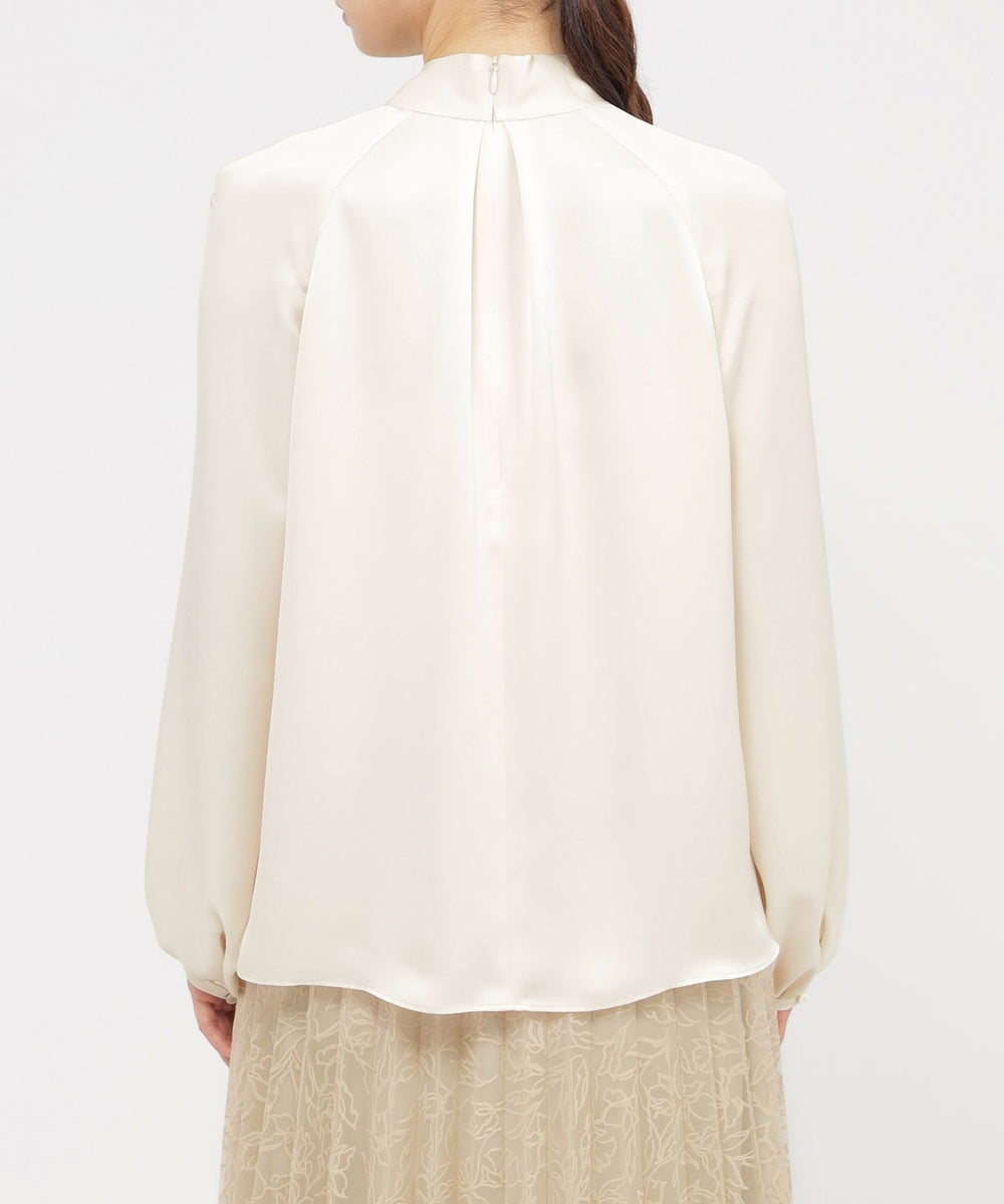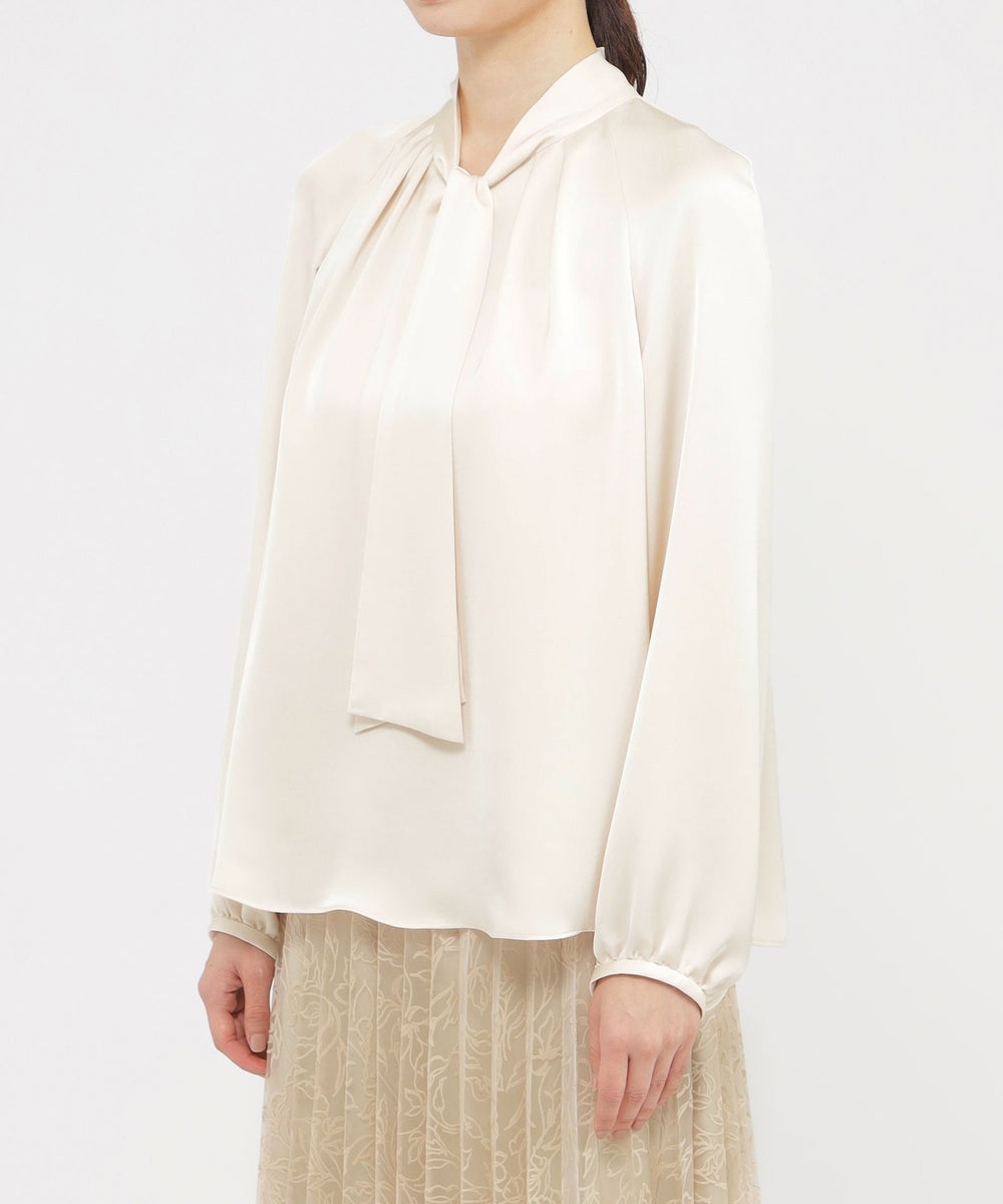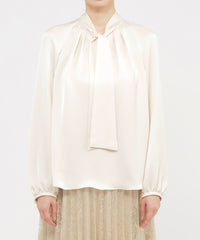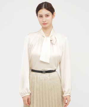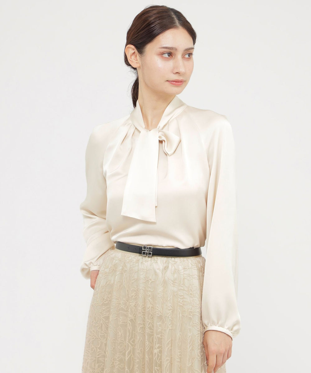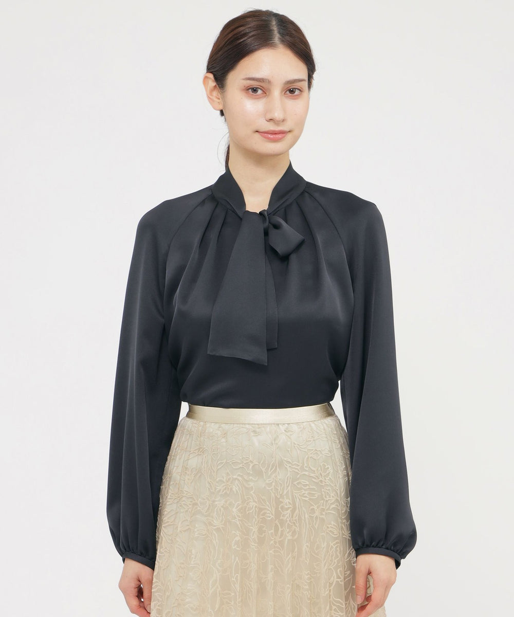 素材のエレガントさを活かしたボウタイブラウスです。