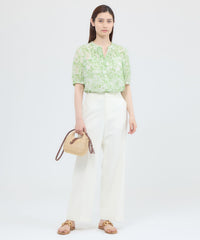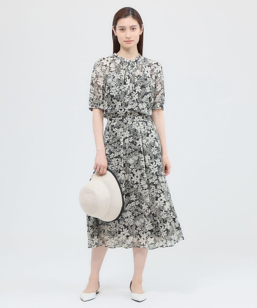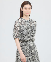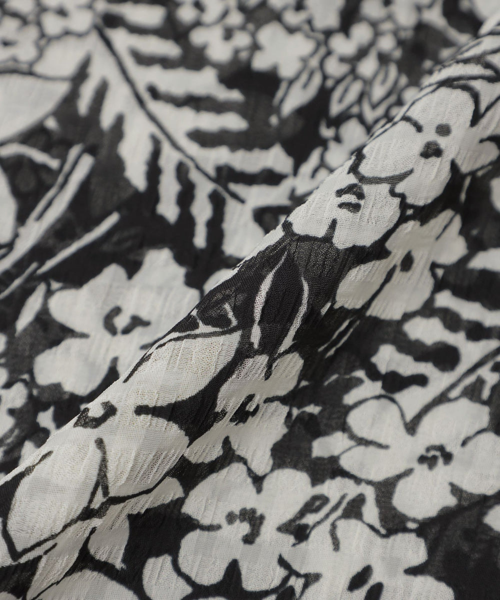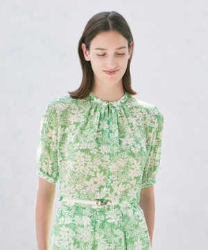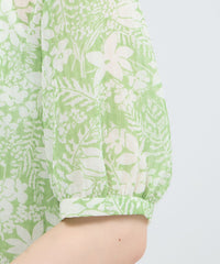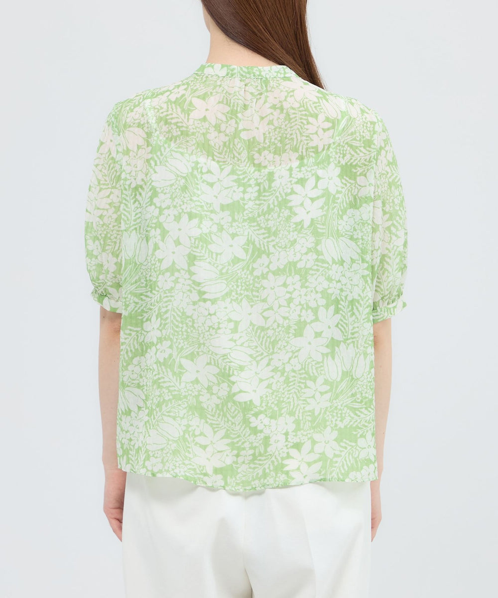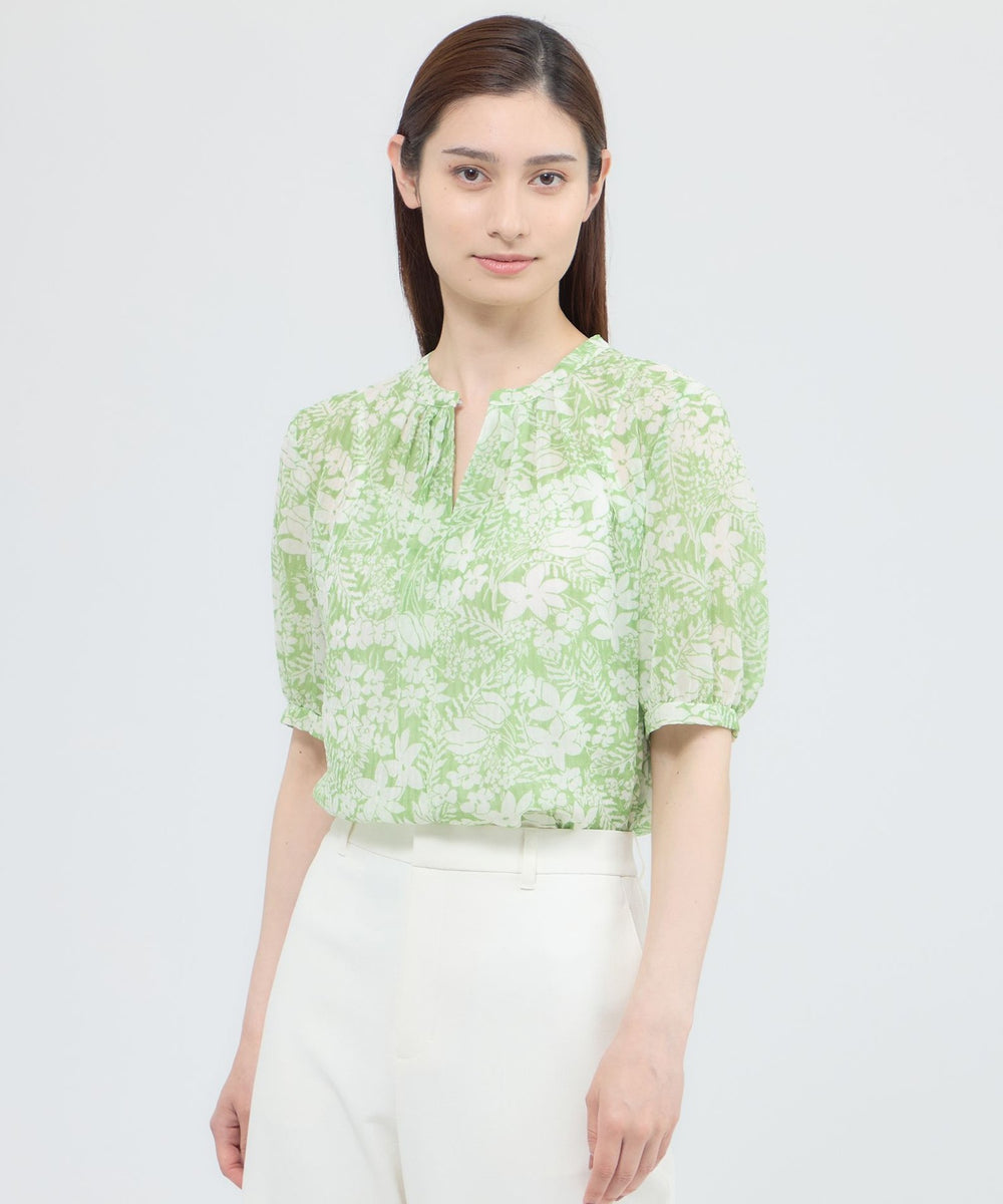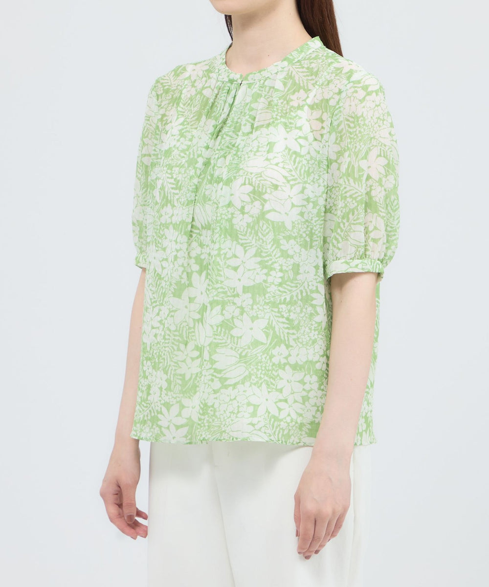 <上品なシアー感が涼やかなフラワープリントブラウス>