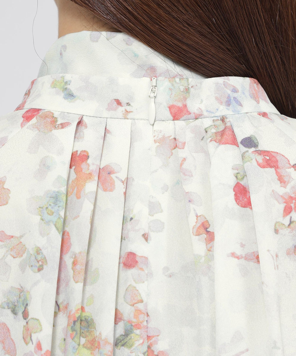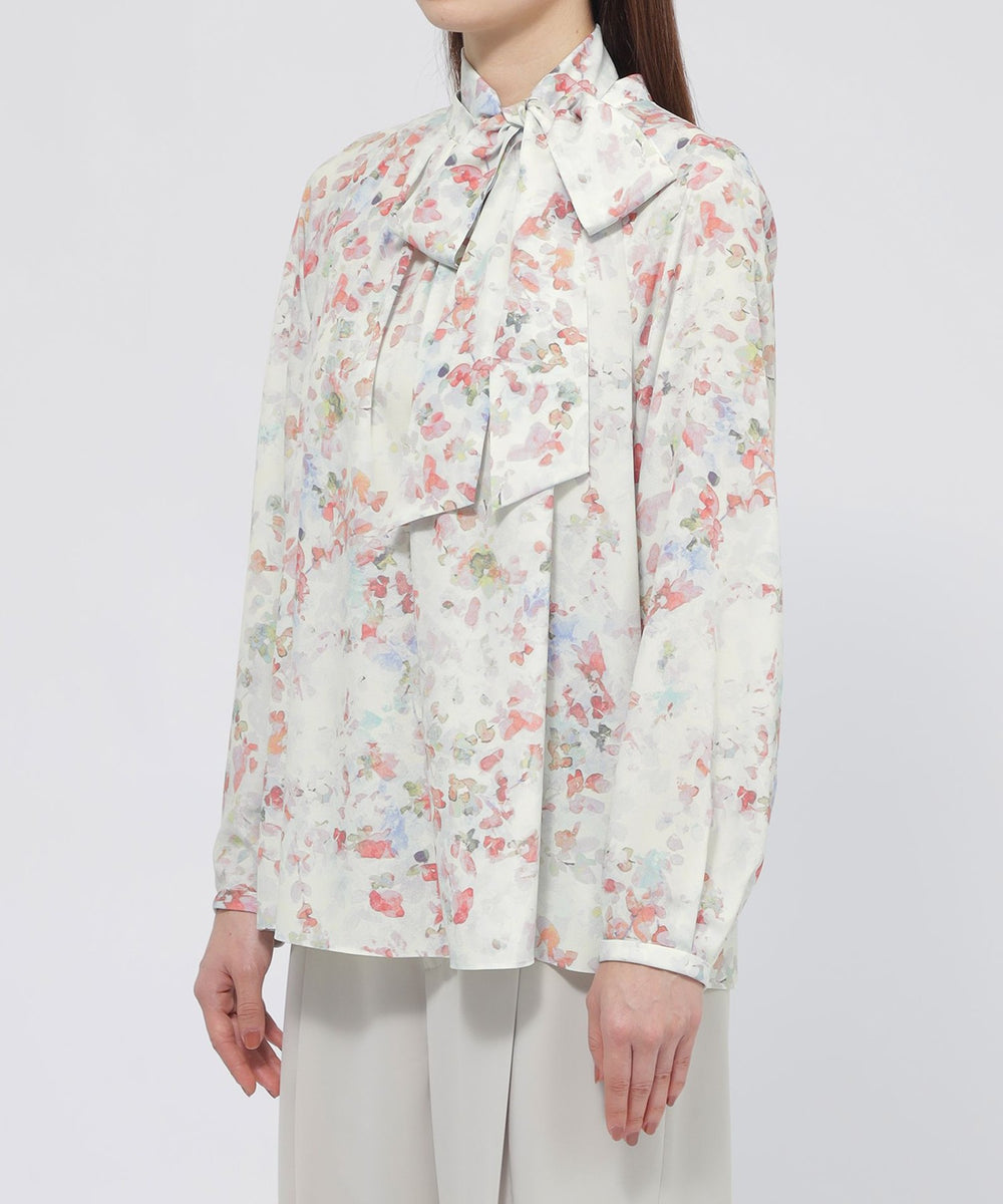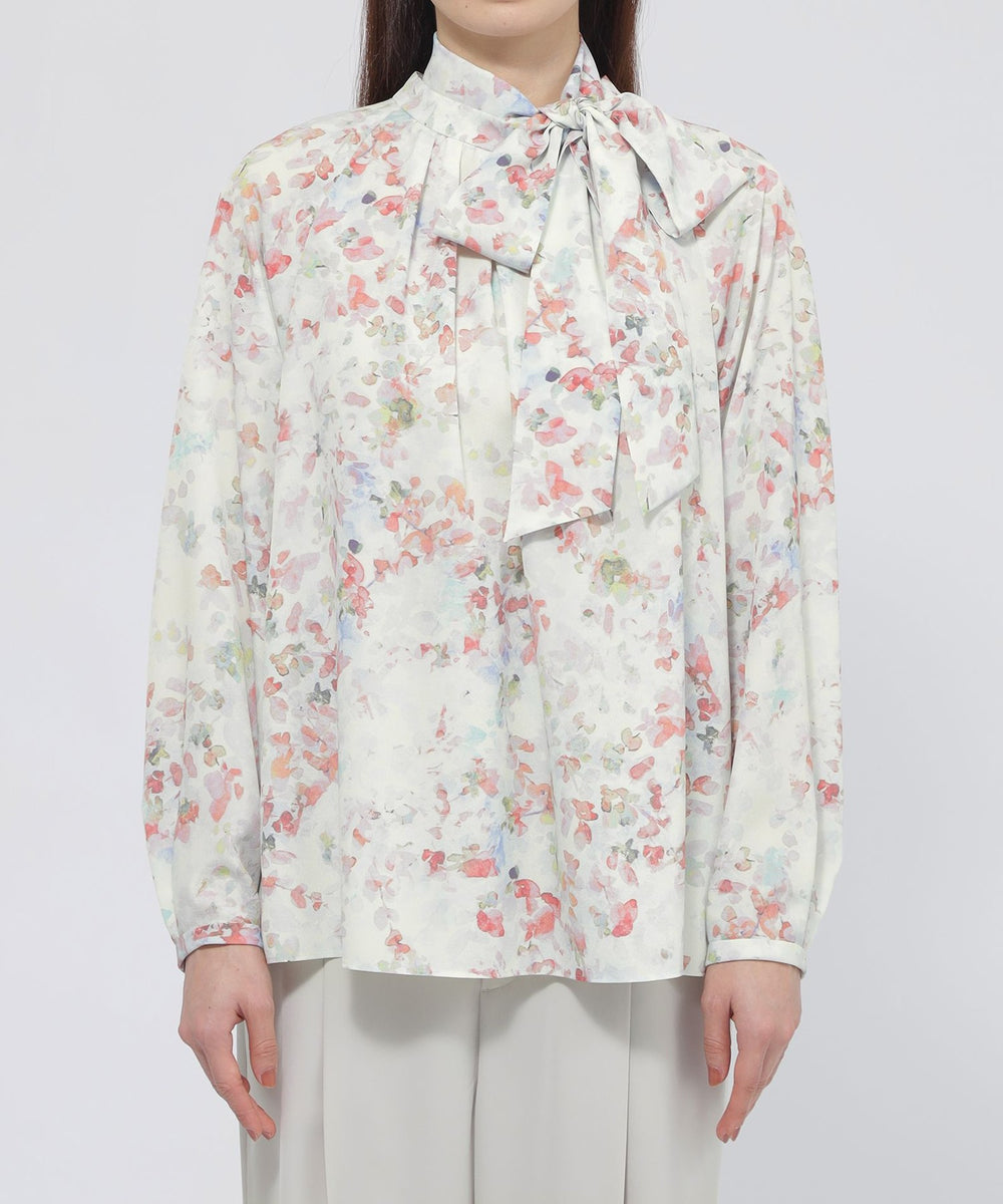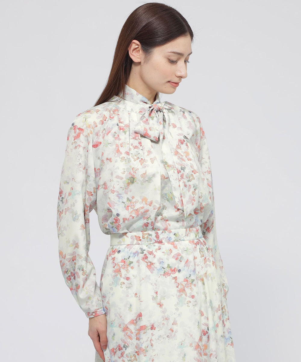 附属のボウタイを首元に巻いて襟元が華やかなスタイリングもおすすめです。