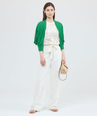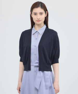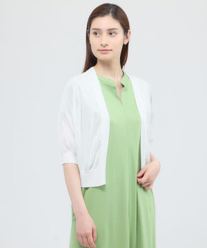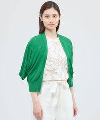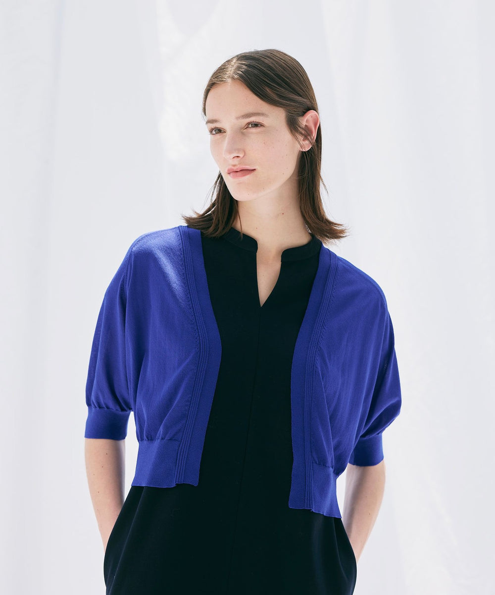 <嬉しい機能と美しいシルエットを併せもつニットボレロ>
