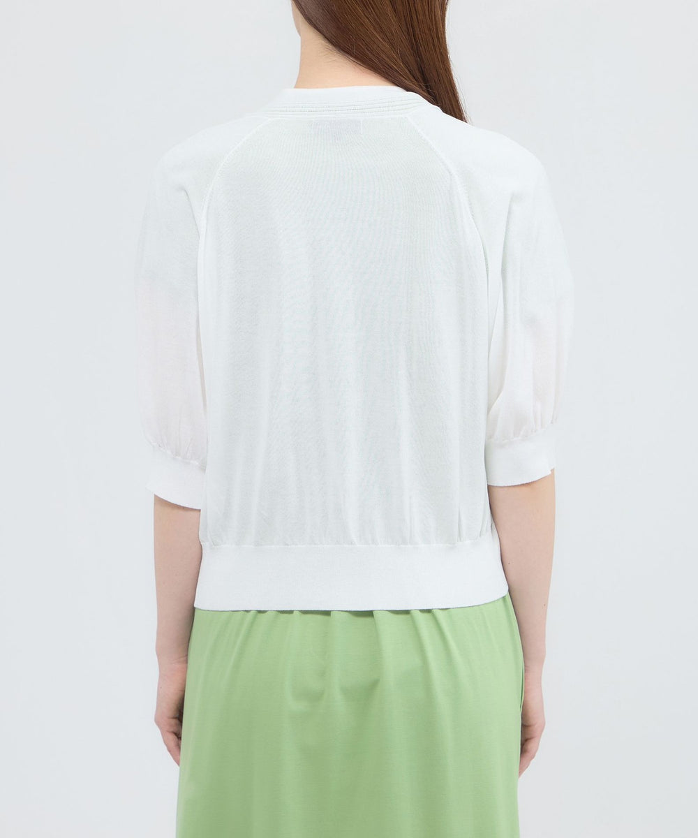 ハイゲージの糸を使用した繊細な編地と程良いシアー感のある素材を使用しています。
