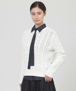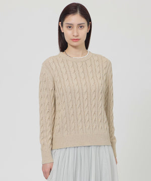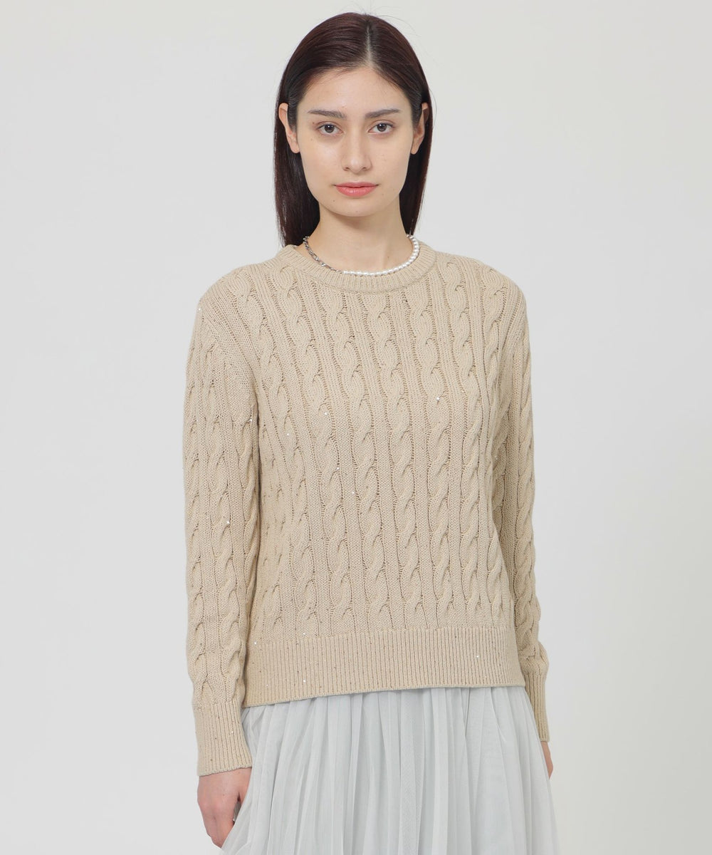 <繊細なスパンコールが上品なケーブル編みニット>