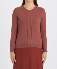 <ケーブル編みがアクセントになったクラシカルなプルオーバー>